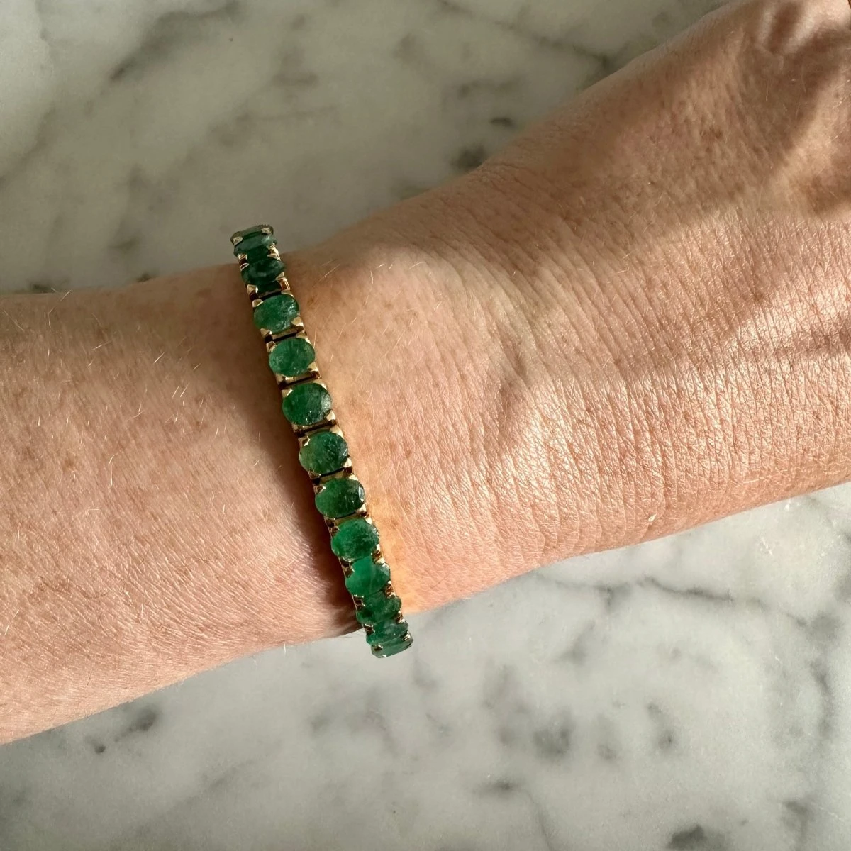 Bracelet Jonc en or jaune 18 carats, entièrement serti d’émeraudes ovales facettées