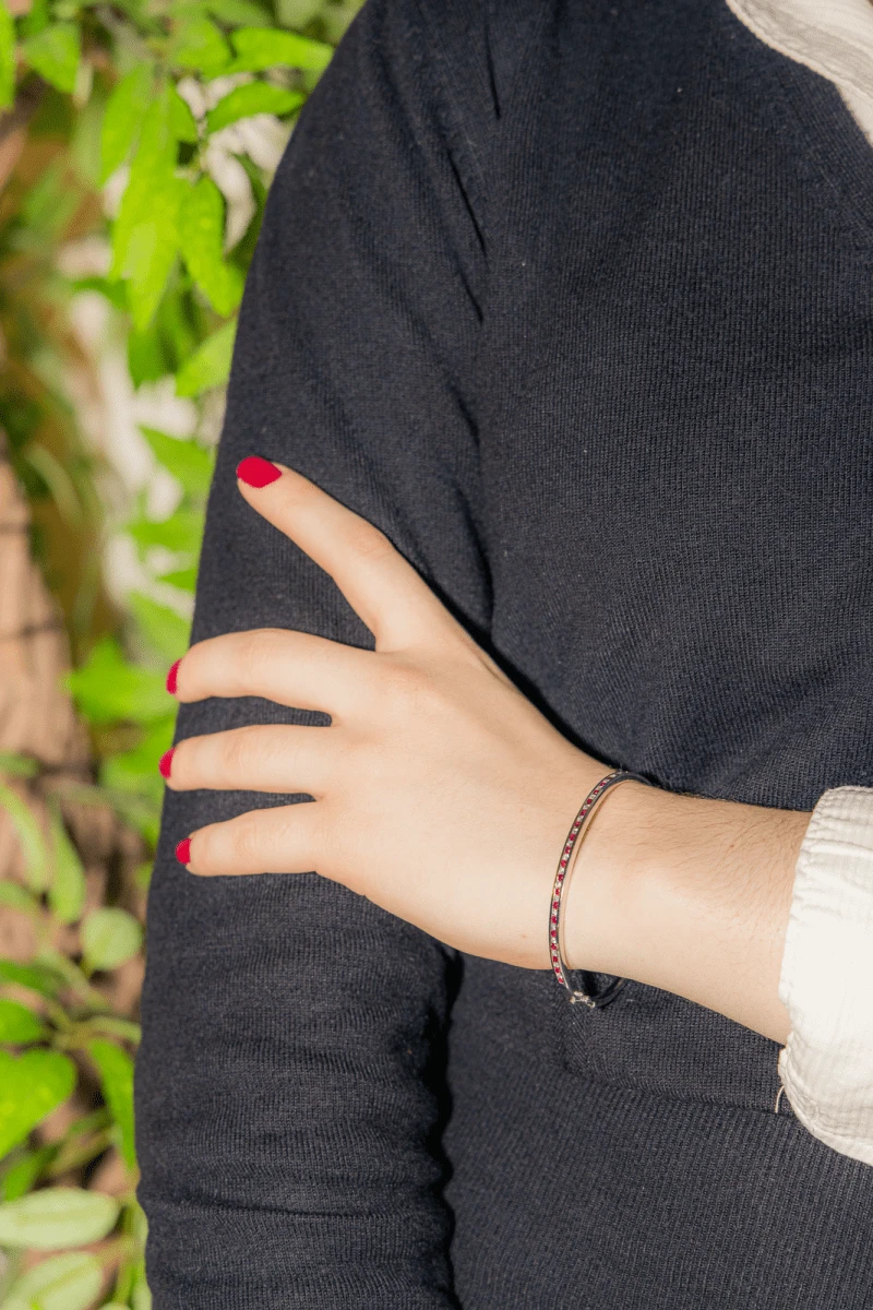 Bracelet Jonc Or Blanc Avec Rubis Et Diamants