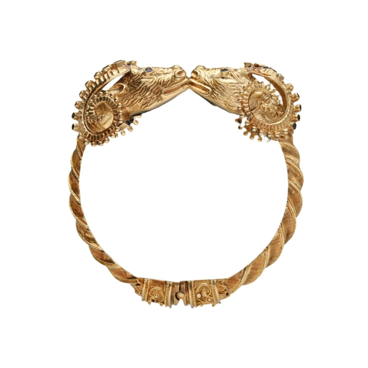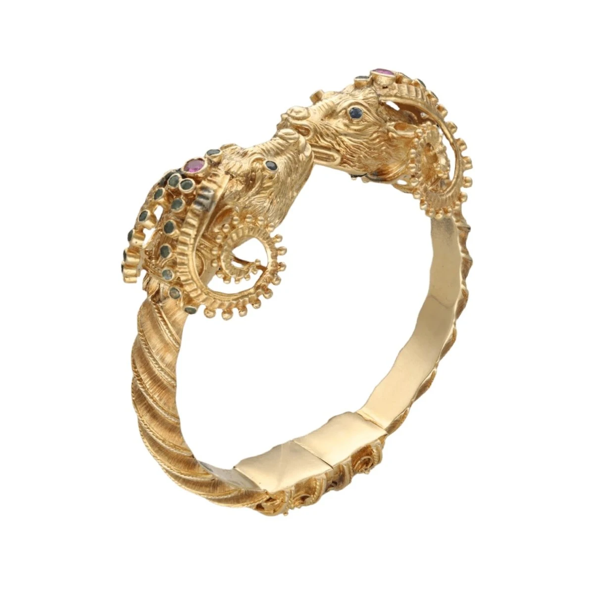 Bracelet Jonc ZOLOTAS « Têtes De Béliers » En Or Jaune, émeraudes, Rubis Et Saphirs