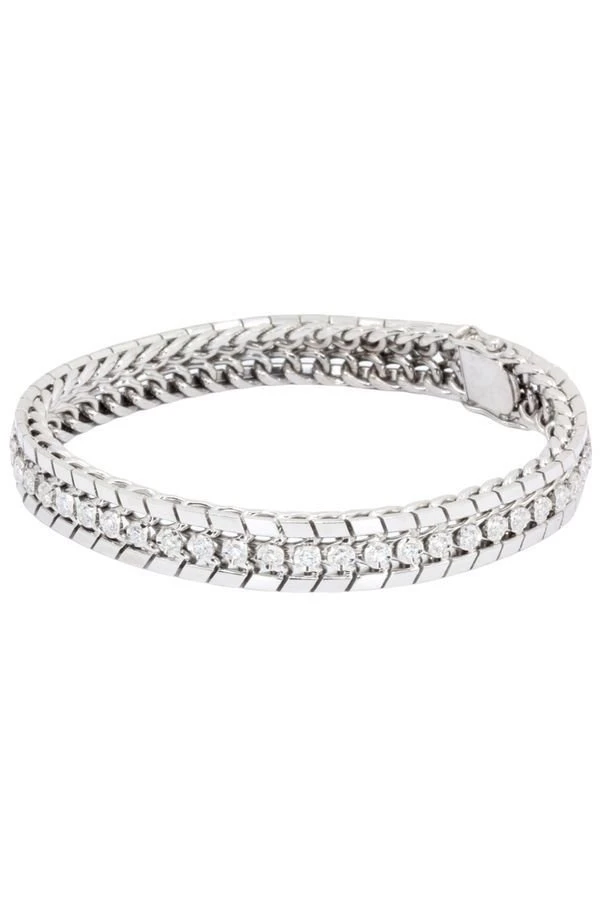 Cette élégante ligne diamants est constituée de motifs articulés entre eux, le fermoir est à cliquet avec deux 8 de sécurité.