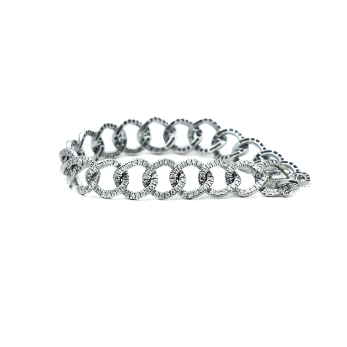 Bracelet Maille en or blanc 18 carats entièrement pavé de diamants taillés en brillant, serti grains. Fermoir à cliquet, avec huit de sécurité
