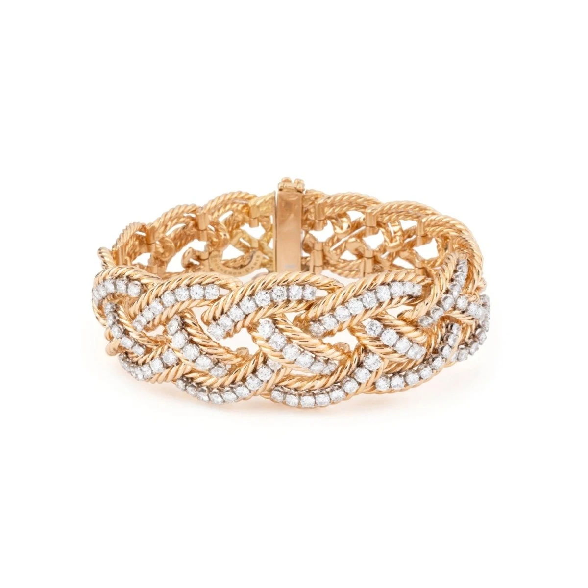 Bracelet Maille Tressé BOUCHERON « Vannerie » En Or Jaune Et Diamants