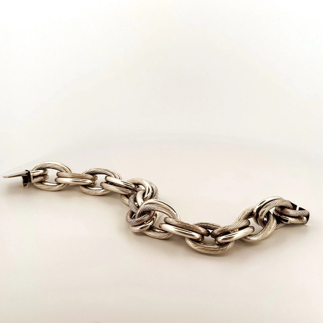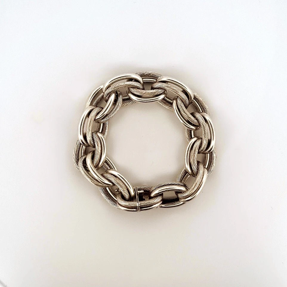 Bracelet HERMES en argent. Les maillons forçat doubles sont torsadés et unis.