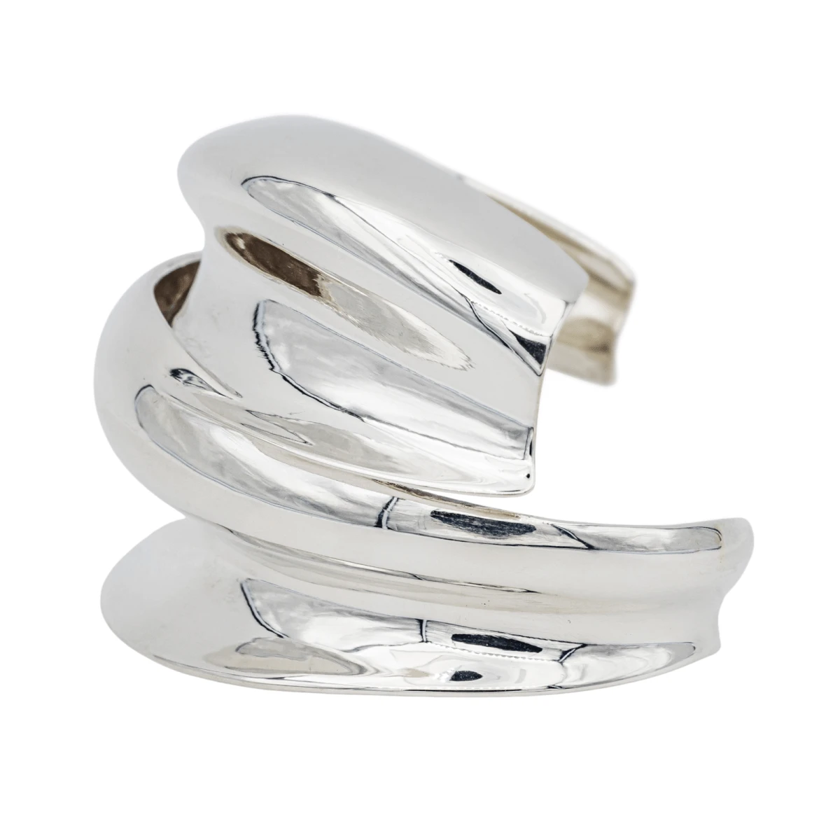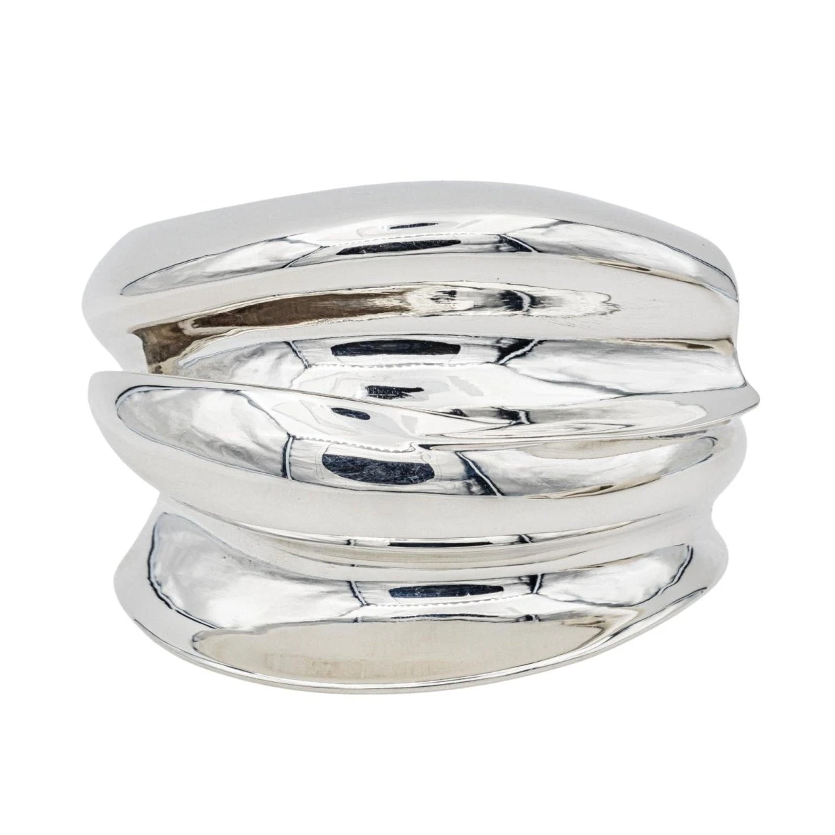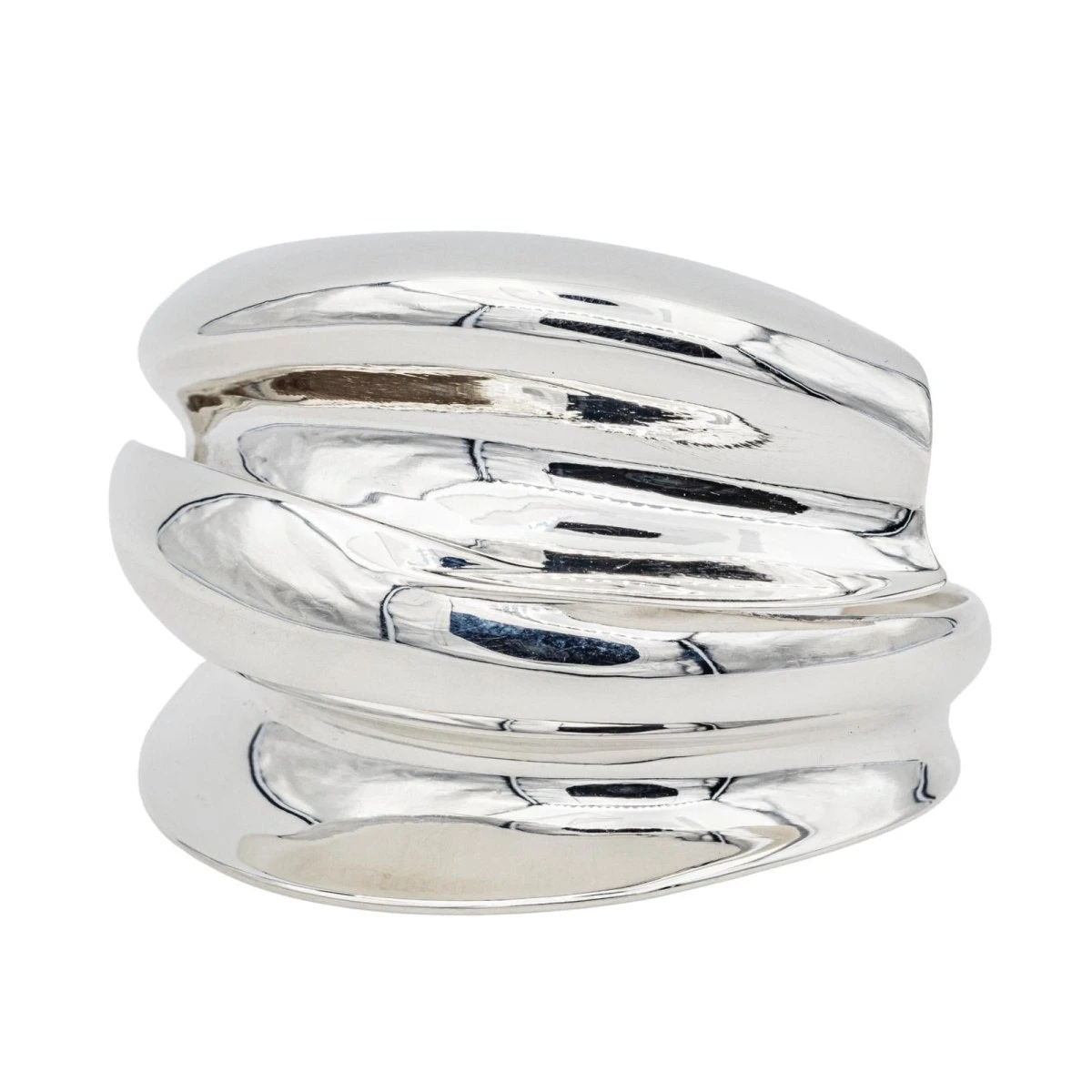 Bracelet manchette signé de la Maison Tiffany &Co en argent 950 millièmes. en collaboration avec Frank Gehry. diamètre intérieur : 6.10 cm x 4.50 cm. longueur : 17.50 cm. largeur : 5.08 cm. épaisseur : 1.71 cm. poids total : 72.44 g. poinçon cygne. excellent état