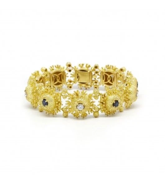 Bracelet en or jaune 750. serti de 5 diamants de 0.20 carat environ chacun et de 5 saphirs de 0.25 carat environ.