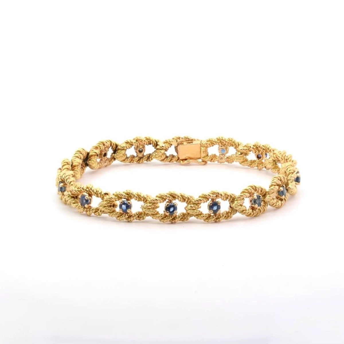 Bracelet en or jaune 18 carats et ornĂ© de 16 saphirs pour un total de 2,40 carats. Epoque 1980.Â