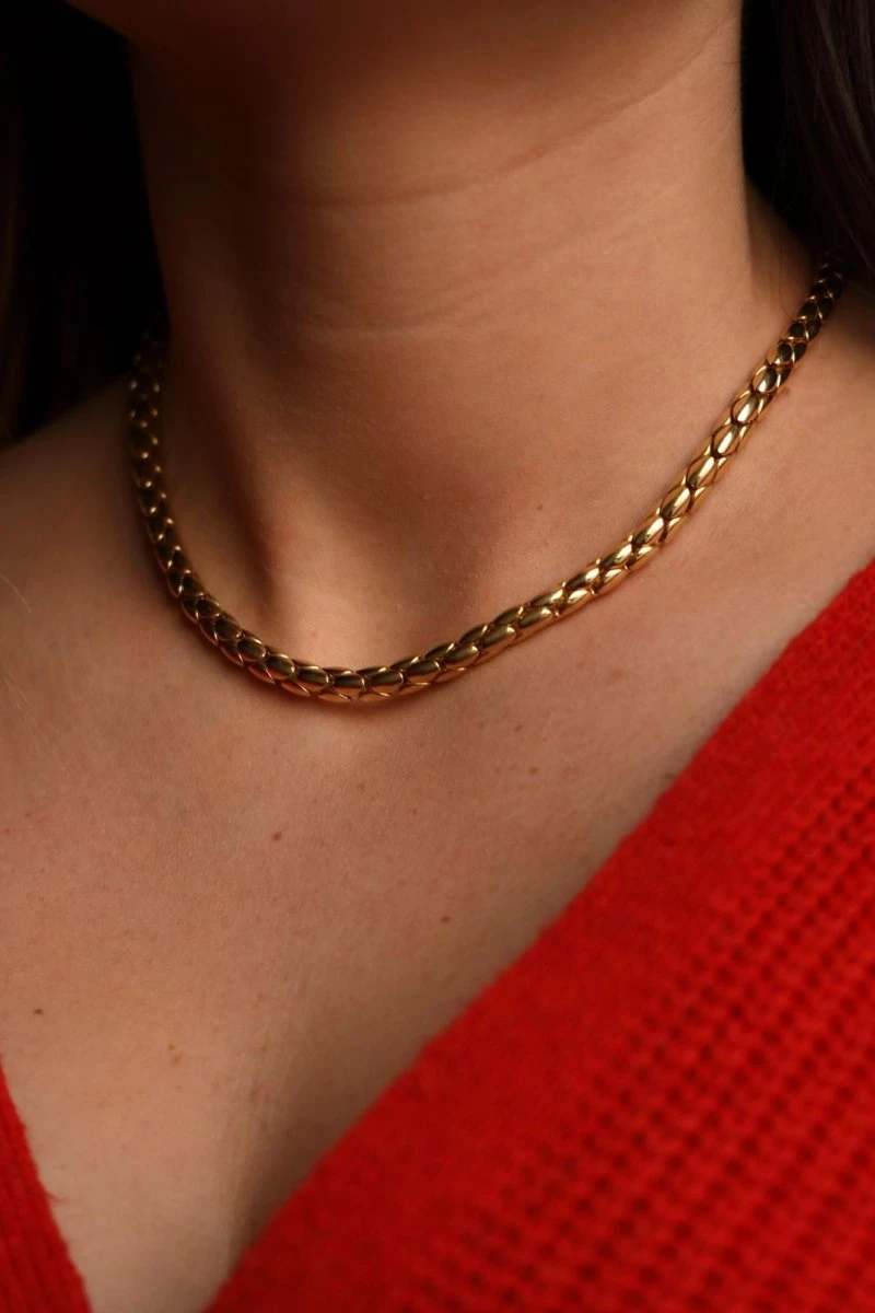 Collier Chaîne Grain De Riz En Or Jaune Et Rubis
