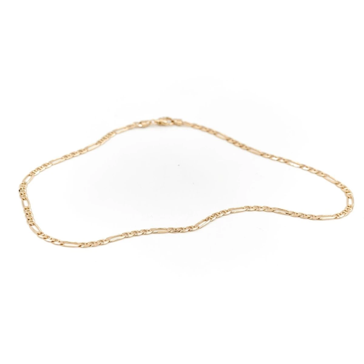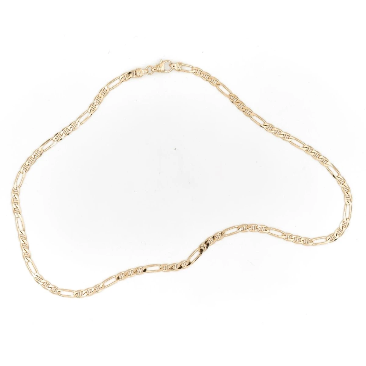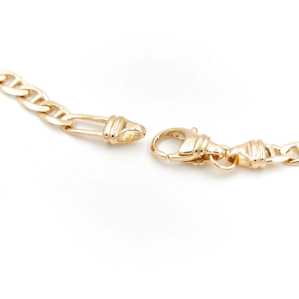 Collier en or jaune 750 millièmes (18 carats). maille alternée. longueur: 50 cm. largeur: 0.42. poids total: 20.97 g. poinçon tête d’aigle. excellent état.