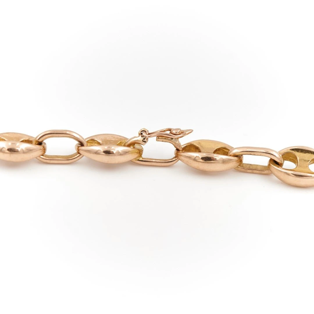 Collier en or jaune 750 millièmes (18 carats). maille grain de café. longueur : 63.5 cm. largeur: 0.63 cm. épaisseur : 0.29. poids total: 54.43 g. poinçon hibou. excellent état.