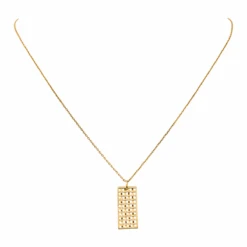 Collier signé de la Maison Mauboussin en or jaune 750 millièmes (18 carats). modèle Une Galerie Rue de Seine. maille forçat. longueur : 42.00 cm. largeur de la chaîne : 0.06 cm. dimensions du motifs : 2.36 cm x 0.93 cm. poids total : 3.12 g. poinçon tête d’aigle. numéroté. excellent état