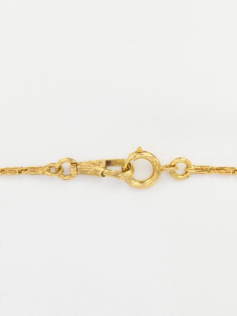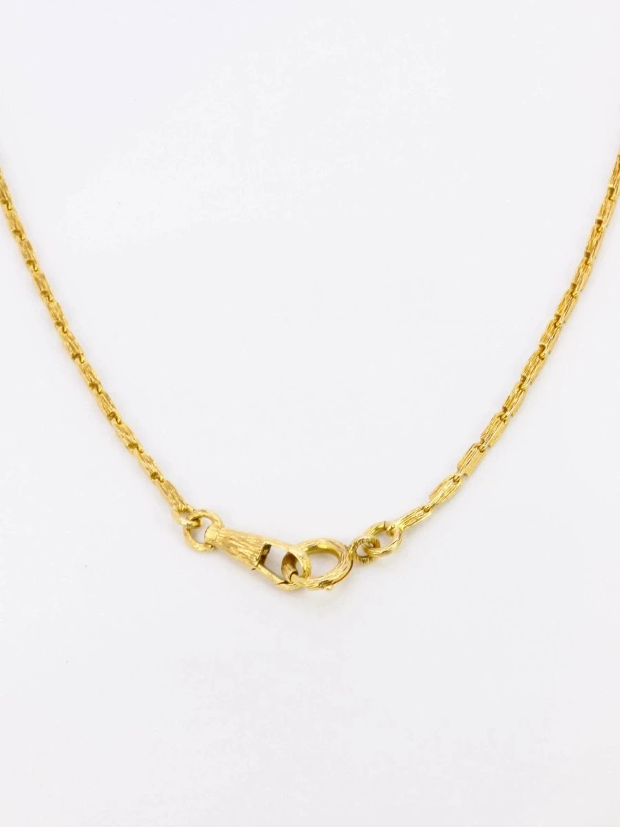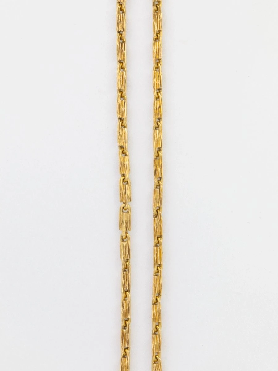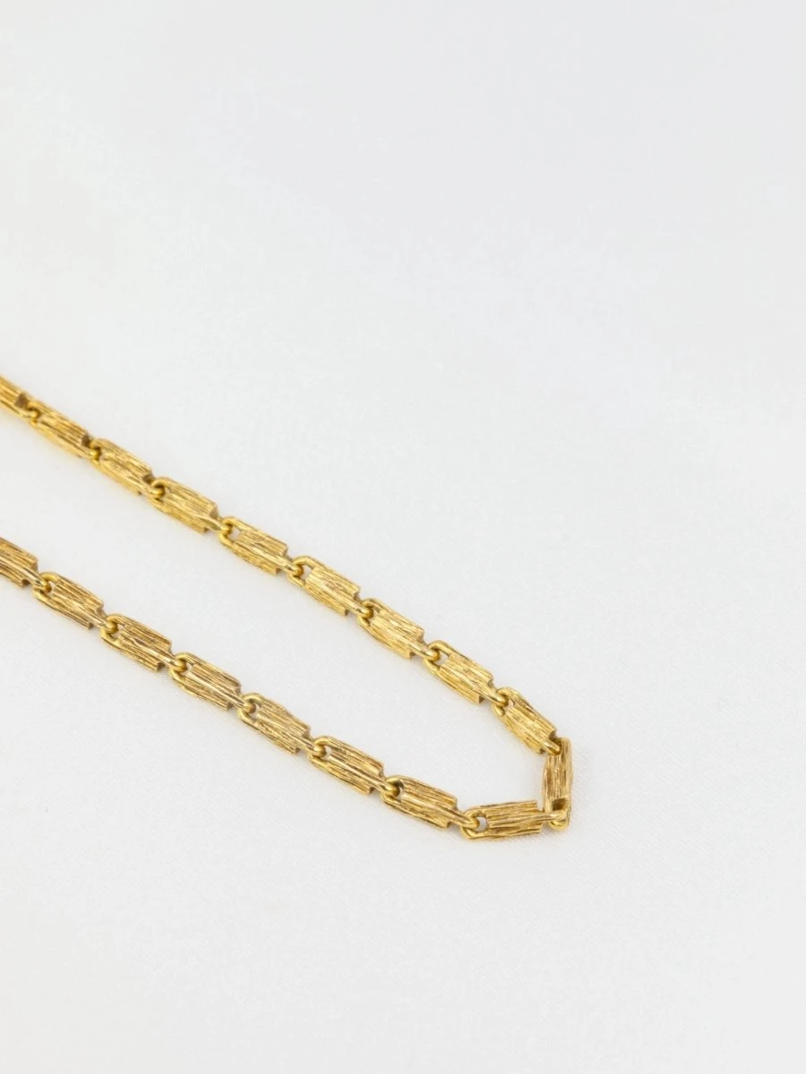 Collier chaîne en or 18 carats (750°/°°), les maillons sont de forme rectangulaire et travaillés en stries. Travail datant des années 1970. Présence d’un poinçon 750 et du poinçon de fabricant.