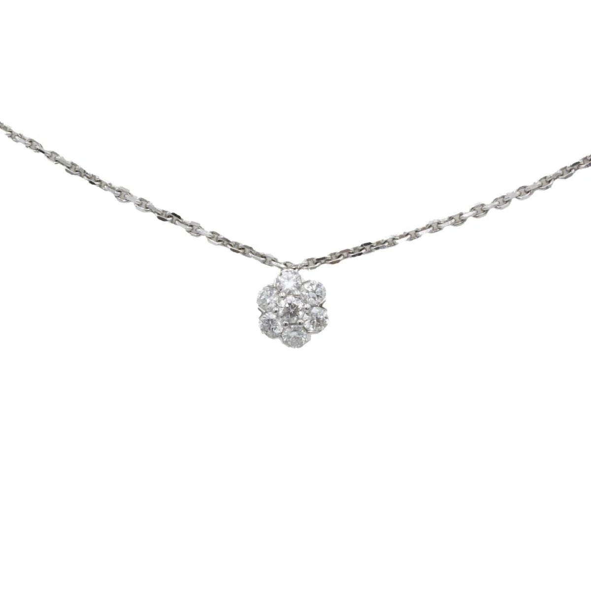 Collier signée MESSIKA en or blanc 750‰, à forme de fleur, serti de 0,30 carat de diamants.Â