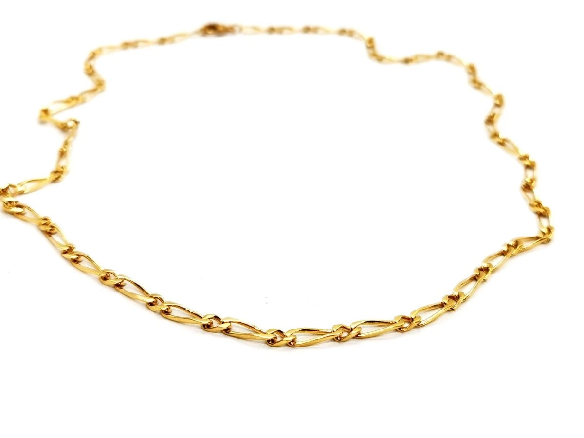 Collier en or jaune 750 millièmes (18 carats). maille cheval alternée. composé d’une succession alternée de petits et grands maillons. longueur de la chaîne: 50 cm. largeur: 0.3 cm. poids total: 15.41 g. fermoir mousqueton. poinçon tête d’aigle. excellent état.