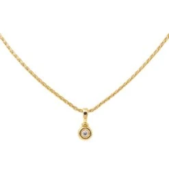 Collier en or jaune 750 millièmes (18 carats). pendentif serti d’un diamant. taille rond brillant. d’un poids total d’environ 0.10 ct. maille palmier. longueur : 40.50 cm. poids total : 5.88 g. poinçon tête d’aigle. excellent état