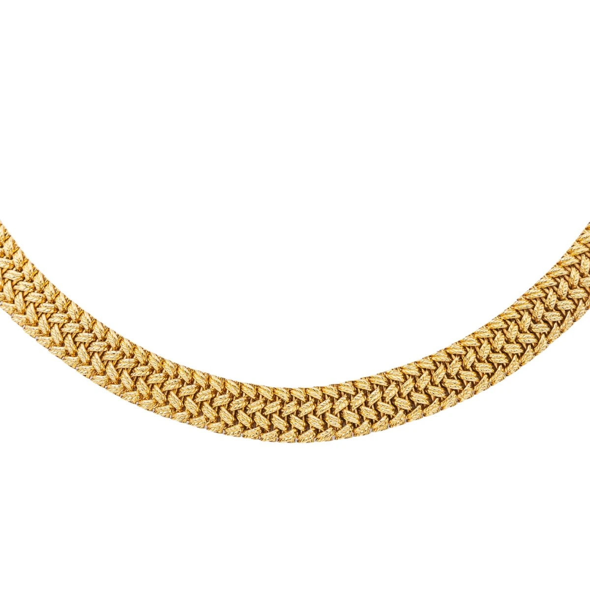 Collier en or jaune 750 millièmes (18 carats). maille polonaise. longueur : 42.00 cm. largeur : 0.89 cm. épaisseur : 0.31 cm. poids total : 66.65 g. poinçon tête de rhinocéros. excellent état