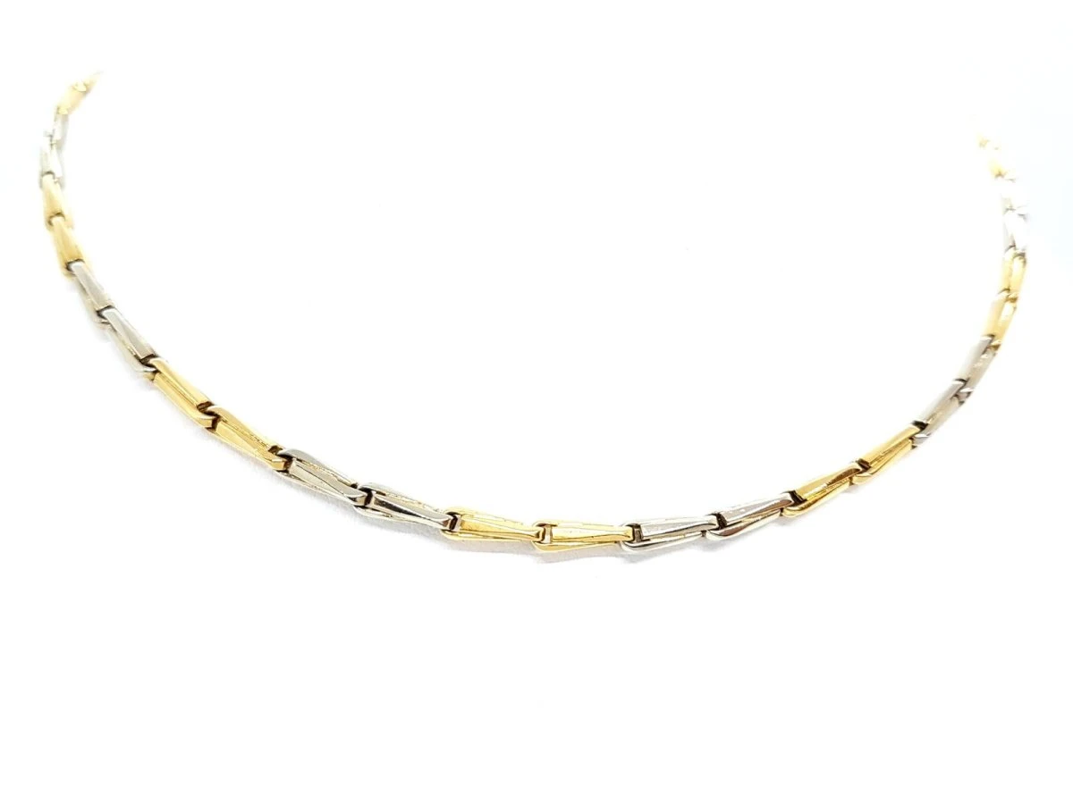 Collier Ras de cou bicolore en or jaune et or blanc 18 carats à maillons forme épis.