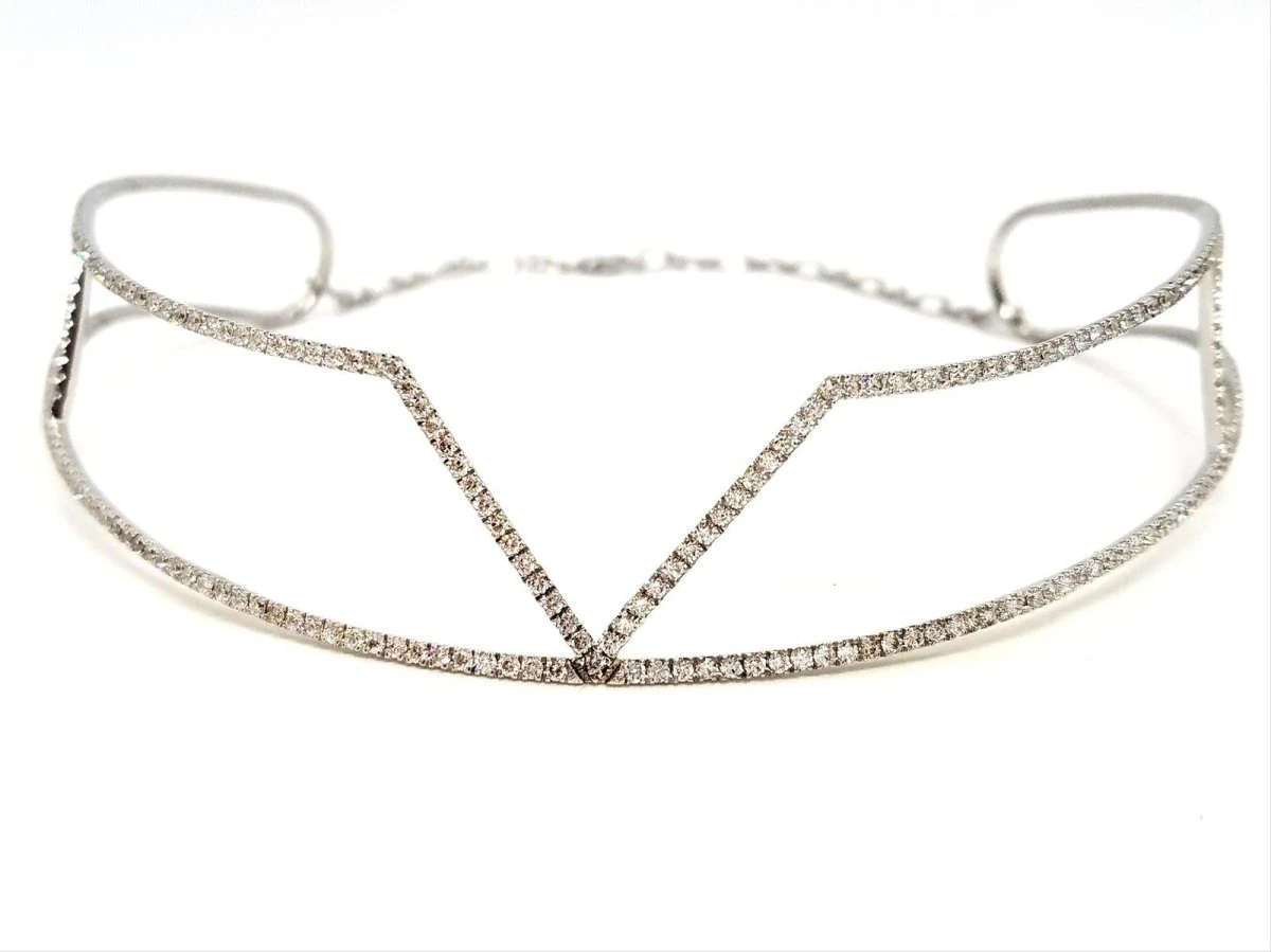 Collier Ras De Cou Graphique En Or Blanc Et Diamants