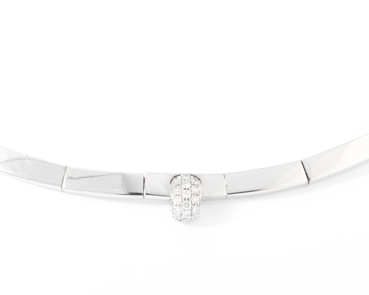 Collier rigide signé de la maison Chaumet orné d’un motif pavé de diamant.