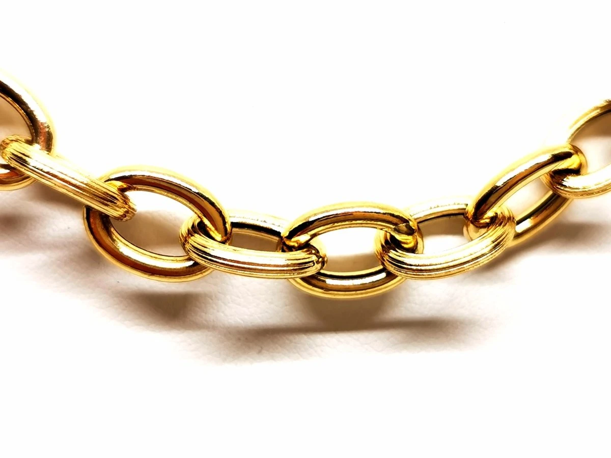 Collier sautoir maille ovale. en or jaune 750 millièmes (18 carats). alternance de maillons strillés et lisses. fermoir bouée. longueur: 71.5 cm. largeur: 0.88 cm. poids: 23.16 g. poinçon tête d’aigle. excellent état