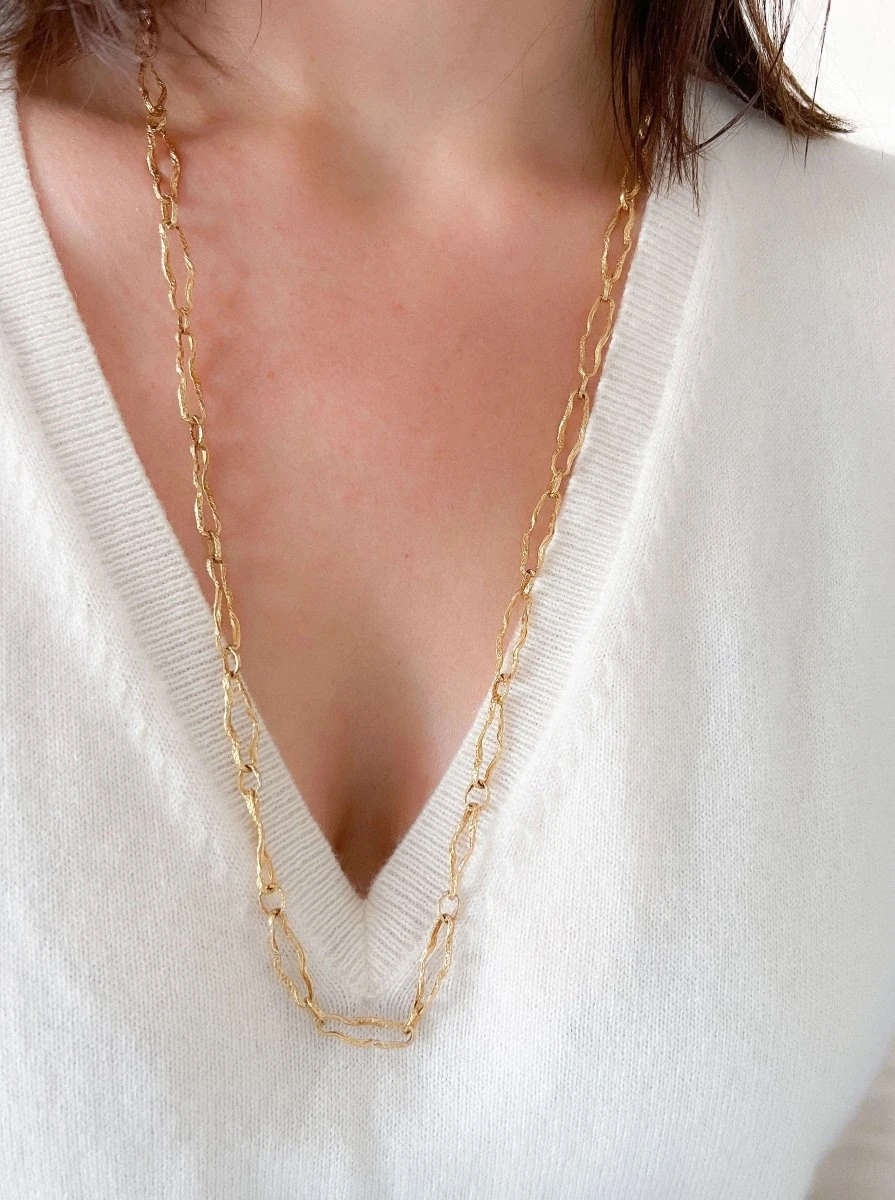 Collier articulé en or jaune les maillons ajourés entièrement gravés du célèbre bijoutier grec.