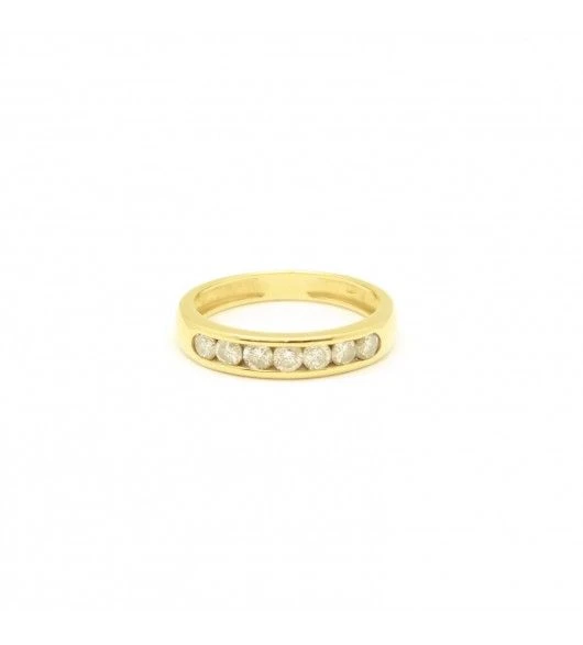 Demi alliance en or jaune 750. sertie de 7 diamants (0.35 carat environ).