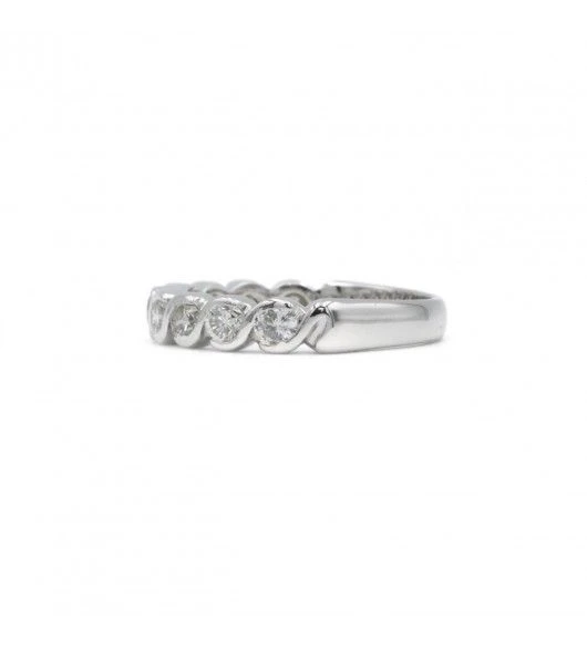 Demi alliance en or blanc 750‰ sertie de 9 diamants de qualité G VS pour un poids total d’environ 0,65 carat. Tour de doigt : 49. Poids : 2,95 grammes. Mise à taille impossible. Cette magnifique demi alliance élégante et scintillante ajoutera une touche de glamour à votre collection de bijoux.