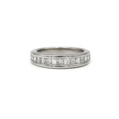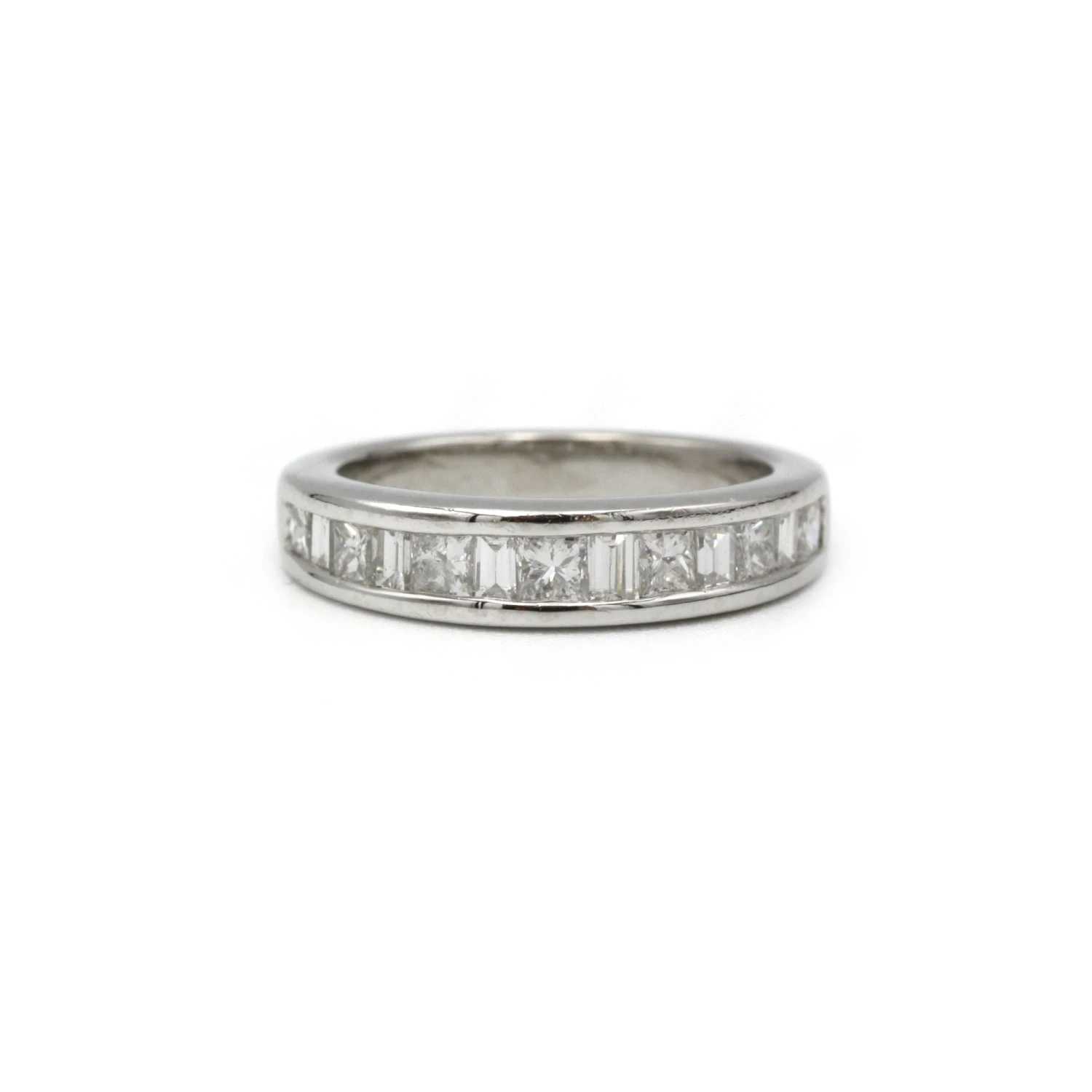 Demi-Alliance en platine 950‰, sertie de diamants taille princesse en rail (total 0,40 carat environ), qualité G VS.