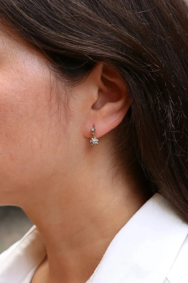 Boucles d’oreilles anciennes or platine diamants