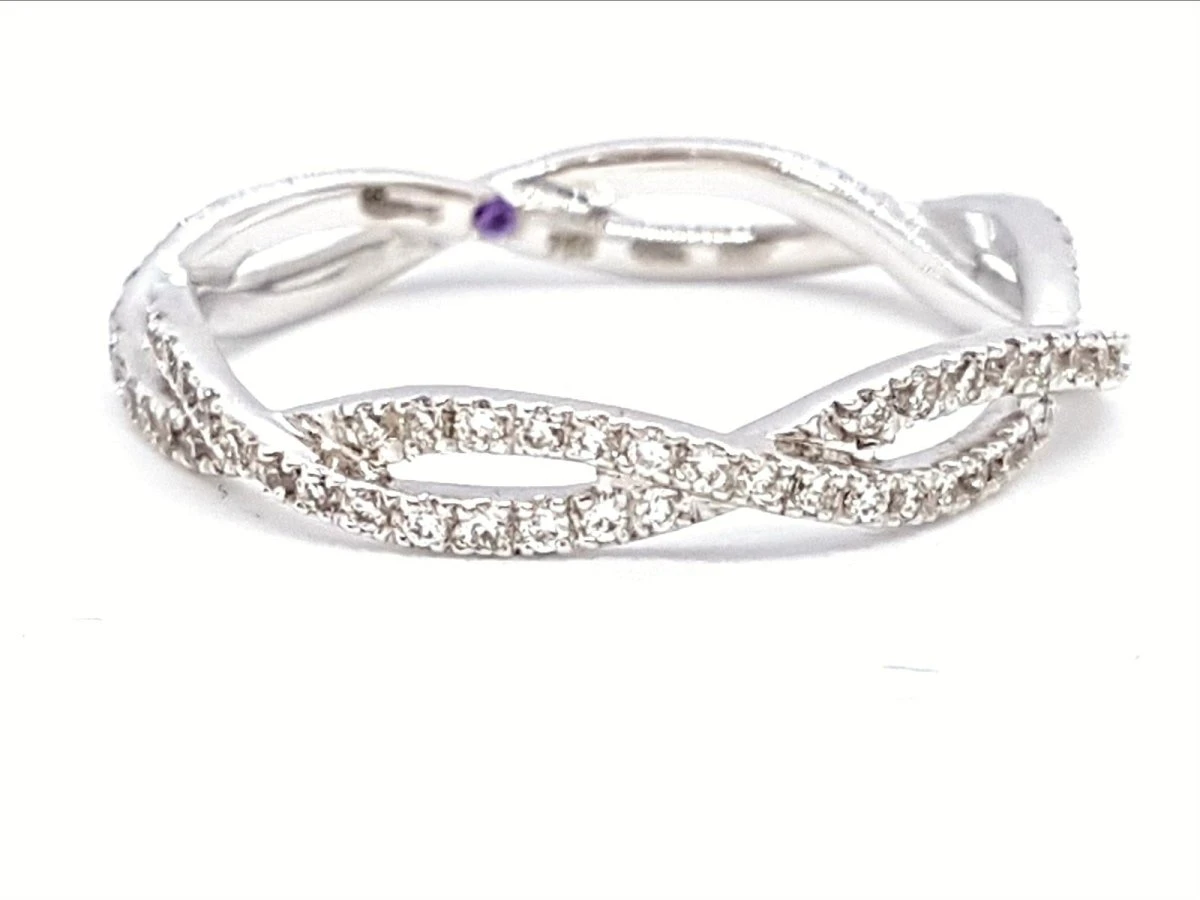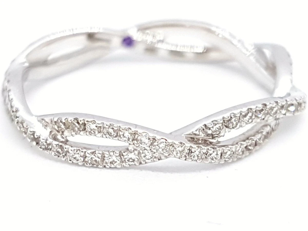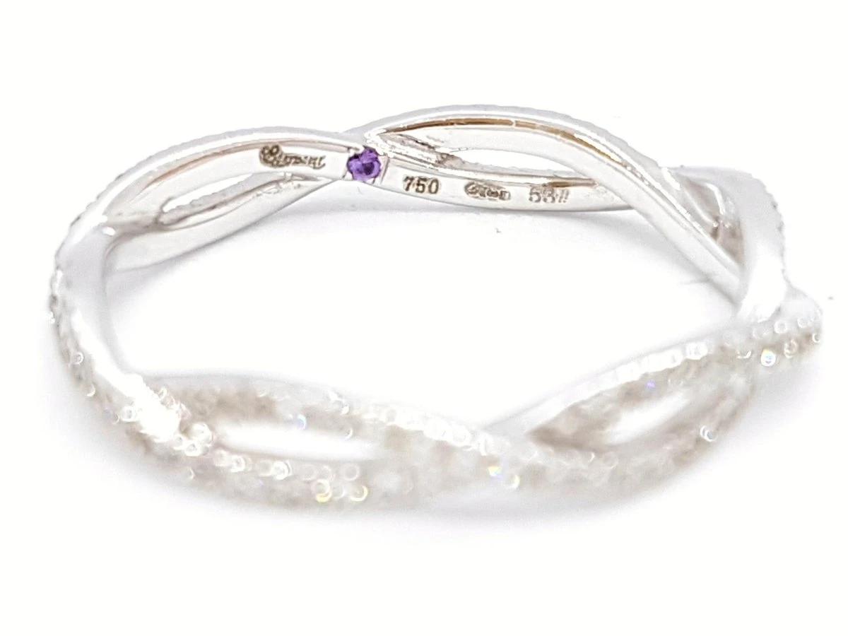 Bague signée de la maison Eternamé. Collection « Entrelacs ». en Or blanc 750 millièmes (18 carats). et pavée de diamants pour environ 0.42 ct au total. taille de doigt: 53. Etat neuf. prix boutique: 1900€