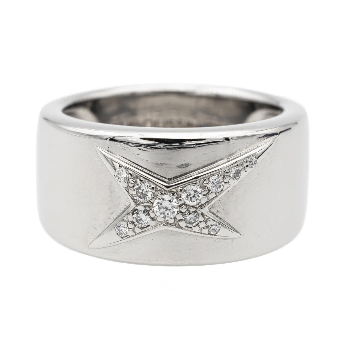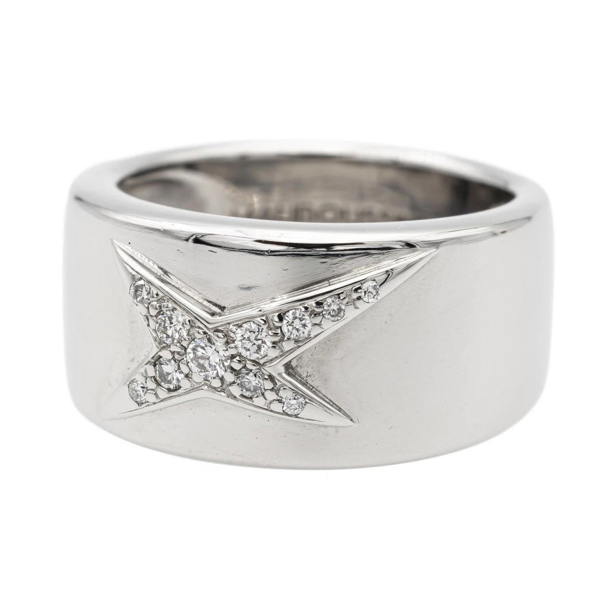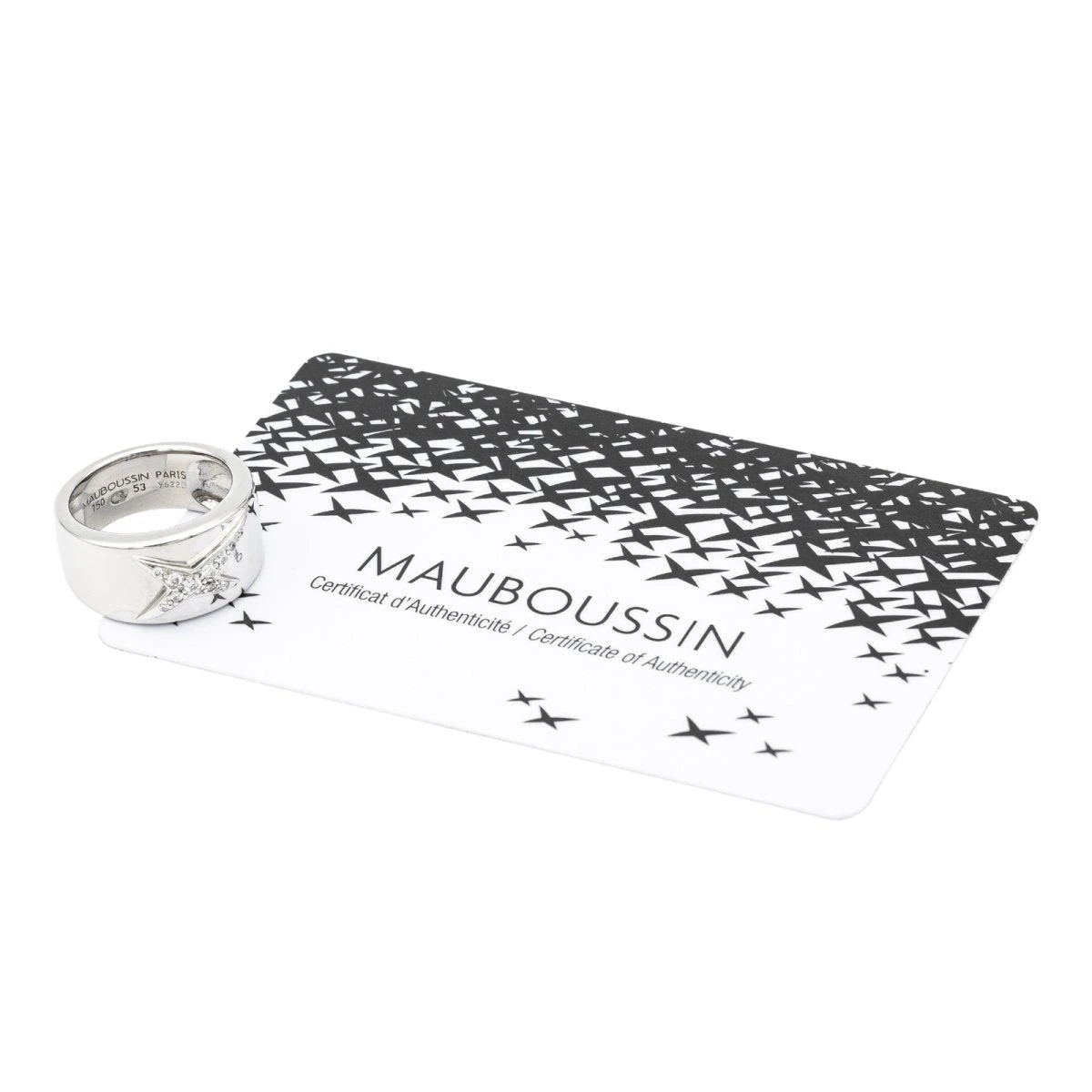 Bague signée de la Maison Mauboussin en or jaune 750 millièmes (18 carats). modèle Etoile Divine. pavée de diamants. 11 diamants taille brillant. d’un poids total d’environ 0.13 ct. (le diamant central d’environ 0.02 ct. 4 diamants d’environ 0.04 ct et 6 diamants d’environ 0.03 ct). largeur sur le dessus: 1.05 cm. tour de doigt: 53. poids total: 10.26 g. poinçon hibou. excellent état