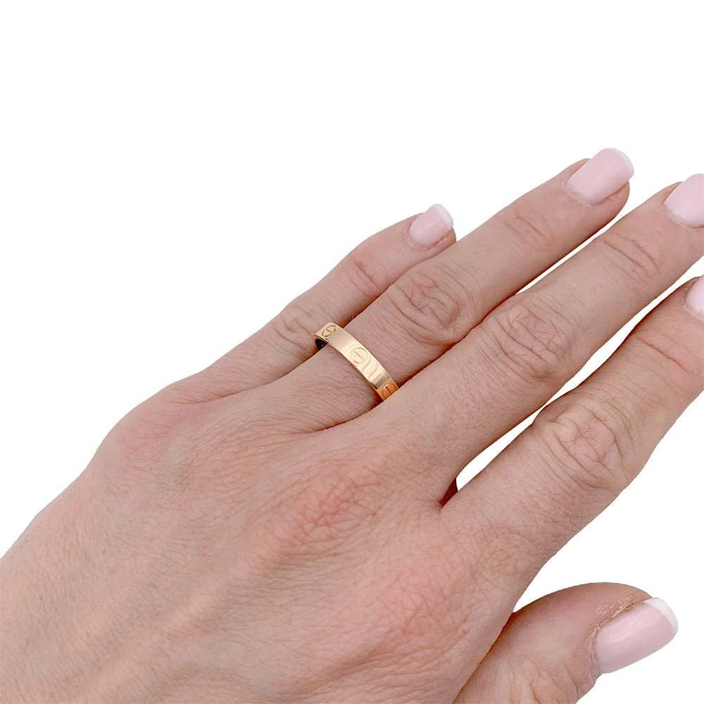 Une bague signée de la Maison Cartier, “Alliance Love”, en or rose 750/000.