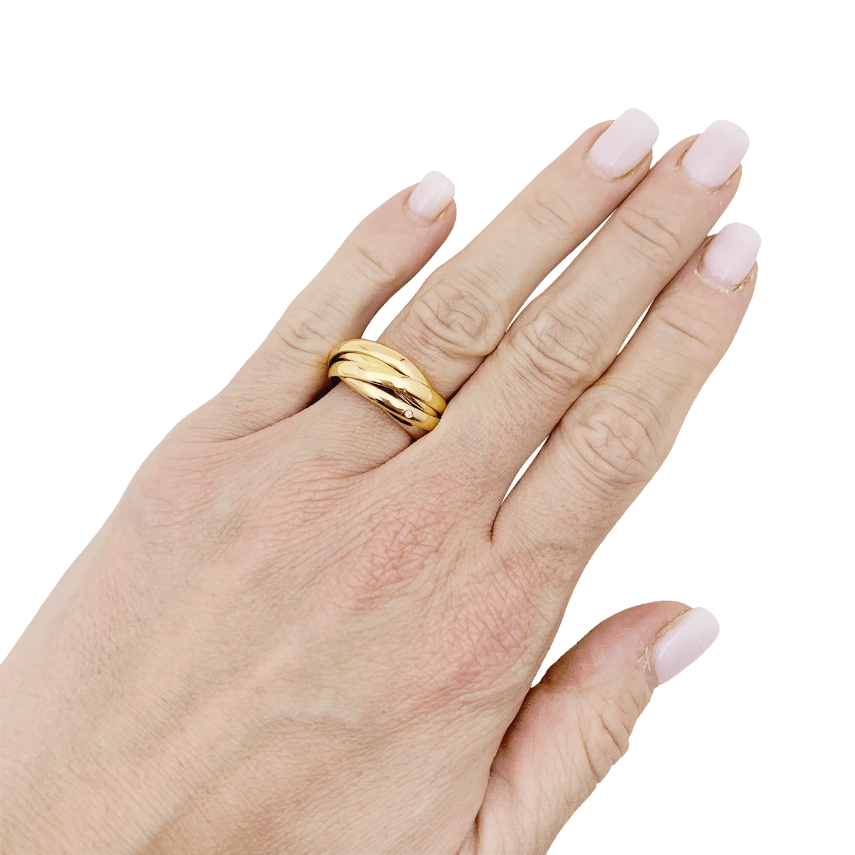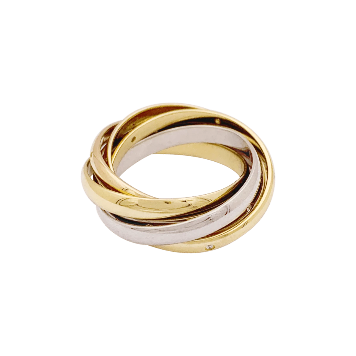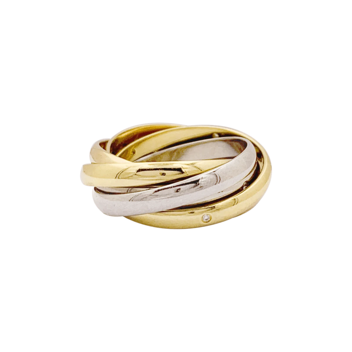 Bague Alliance CARTIER « Trinity » en or jaune, or blanc, or rose 18 carats, composée de 6 anneaux dont trois sont chacun serti de 5 diamants taille brillant.