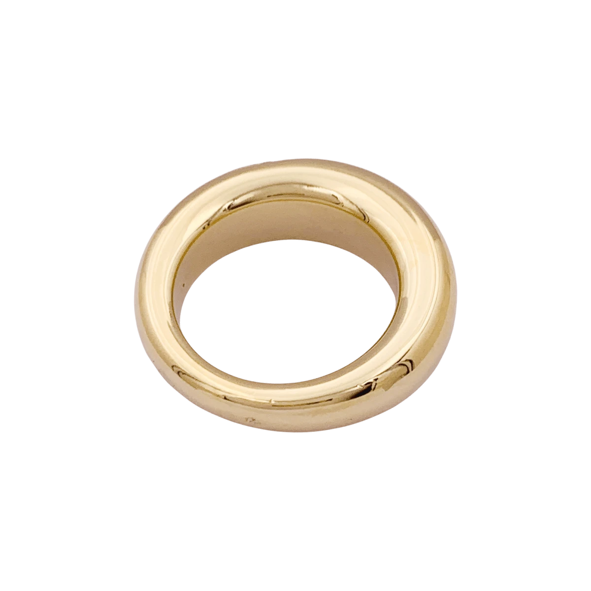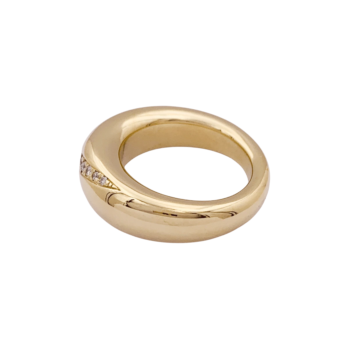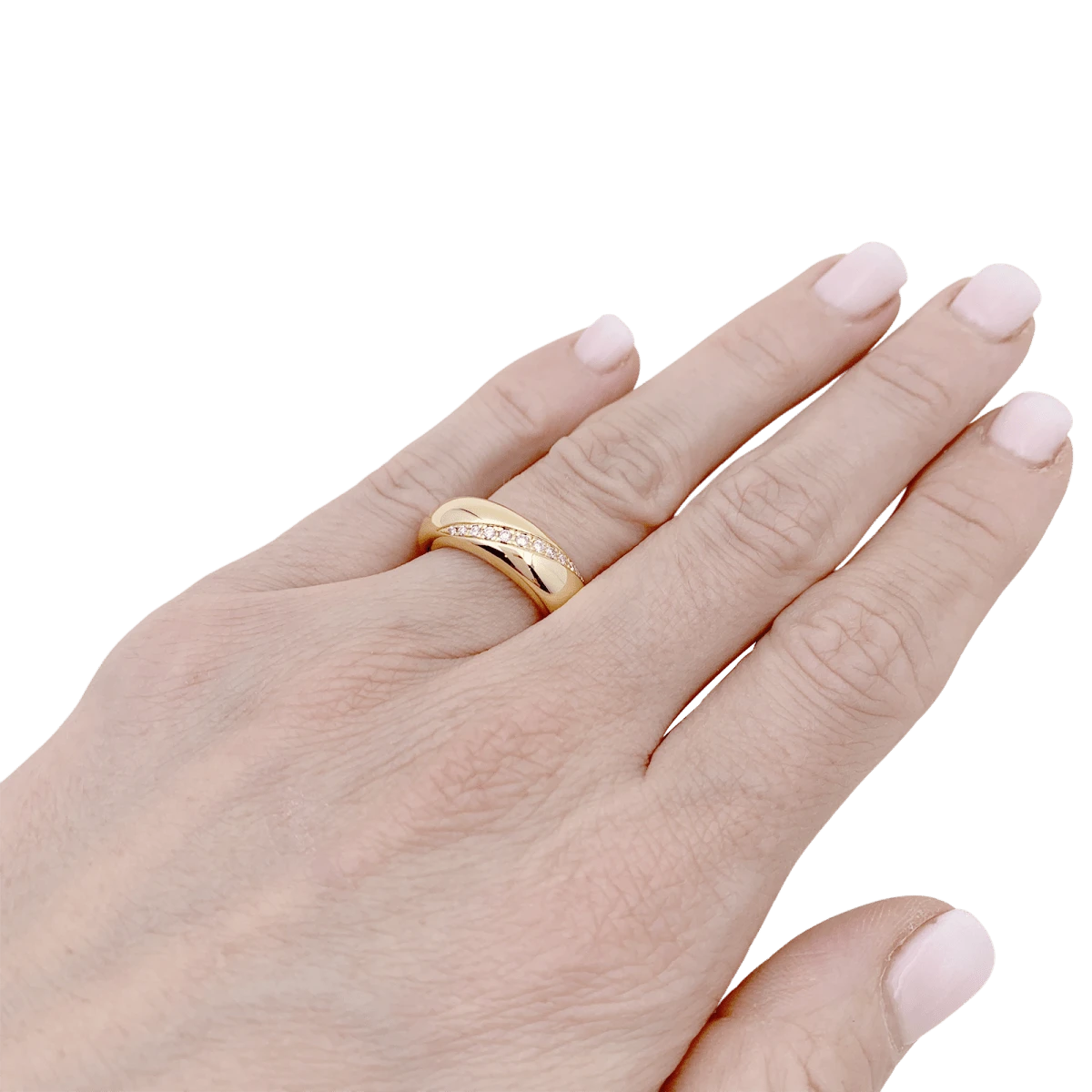 Une bague signée de la Maison Chaumet, collection “Anneau”, en or jaune 750/000 sertie d’une ligne de diamants taille brillant disposés en diagonale.