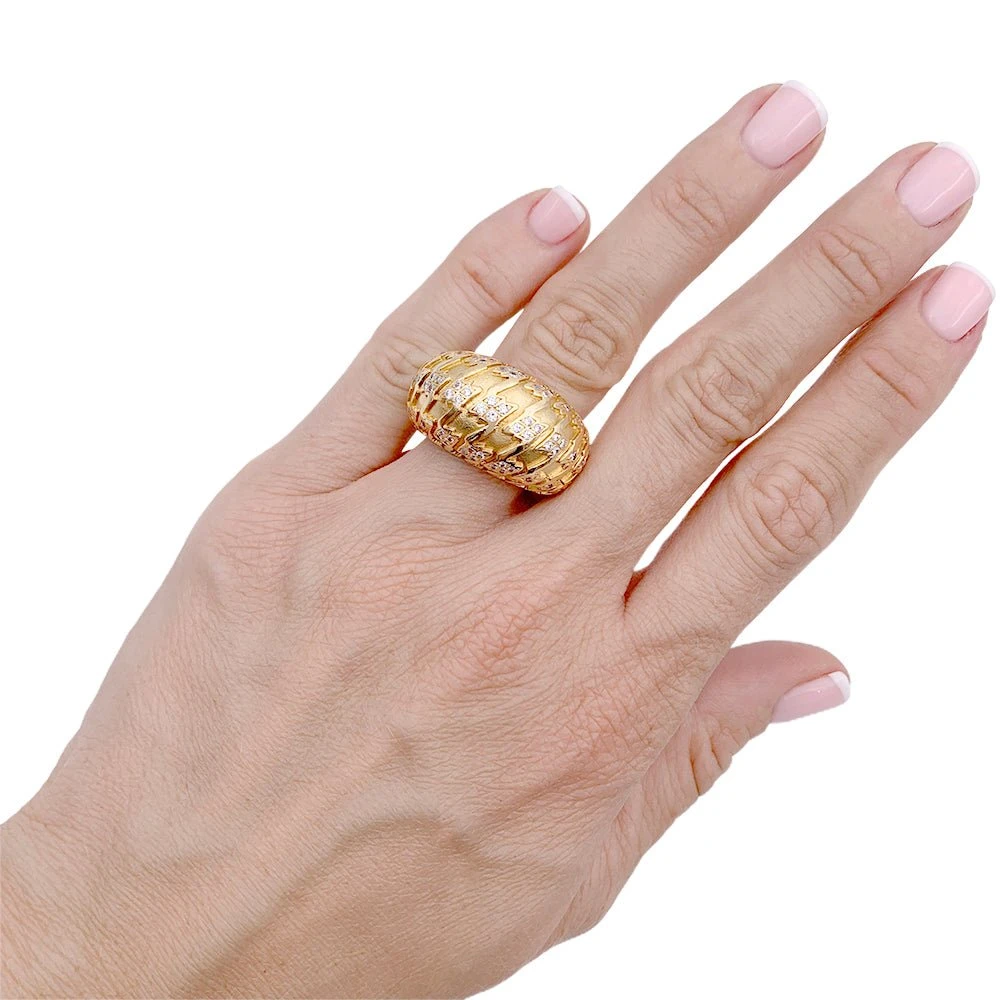 Une bague signée de la Maison Dior, collection “Poulette”, de forme bombée en or jaune 750/000 amati et poli rehaussée de diamants taille brillant.
