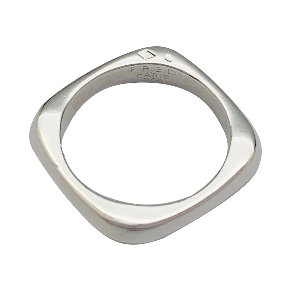 Une alliance signée de la Maison Fred, modèle ‘Coup de Foudre’, en or blanc 750/000 de forme carrée.
