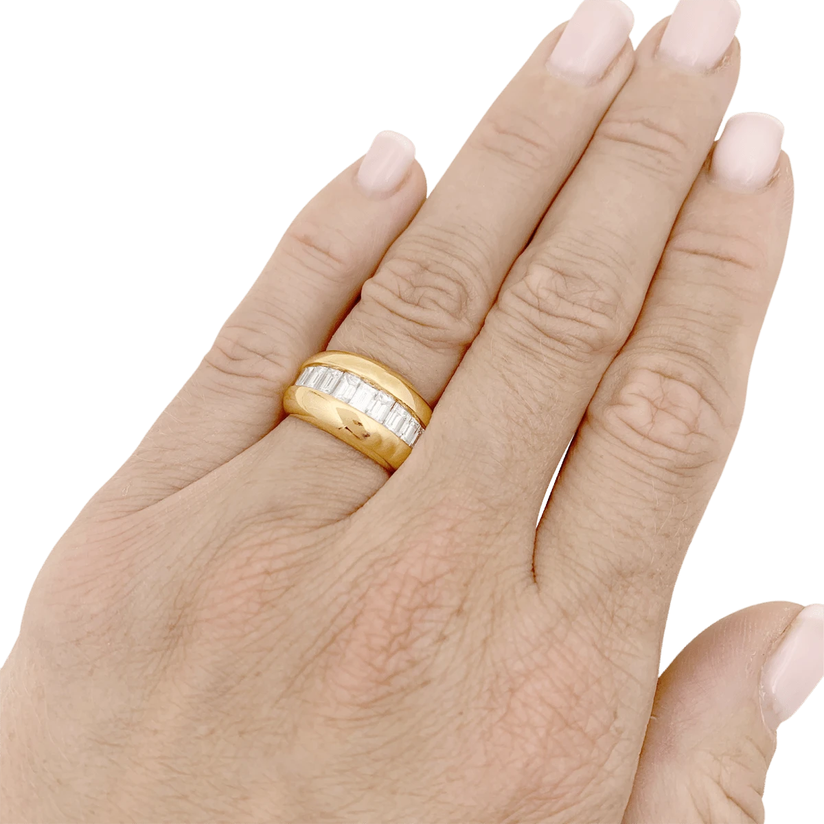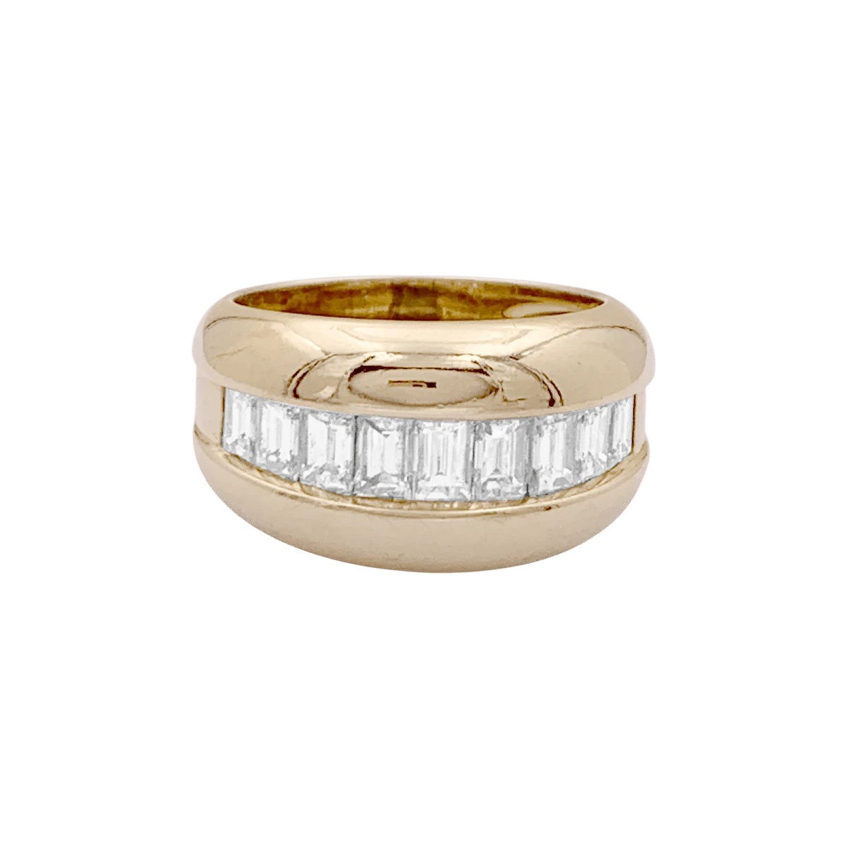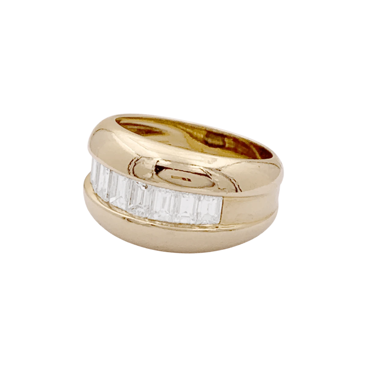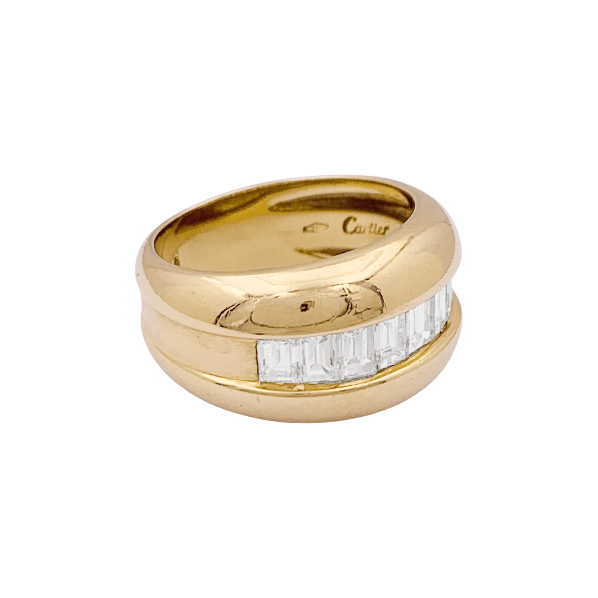 Bague Jonc CARTIER « Odin » en or jaune 18 carats sertie d’une ligne de diamants taille émeraude en chute.