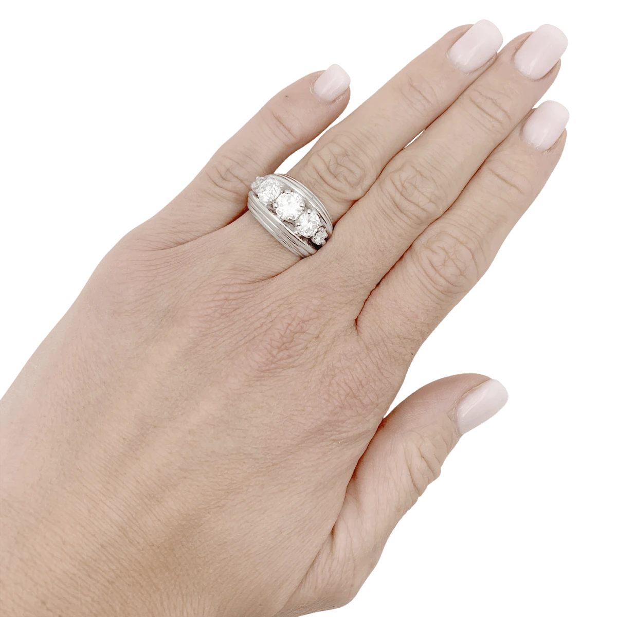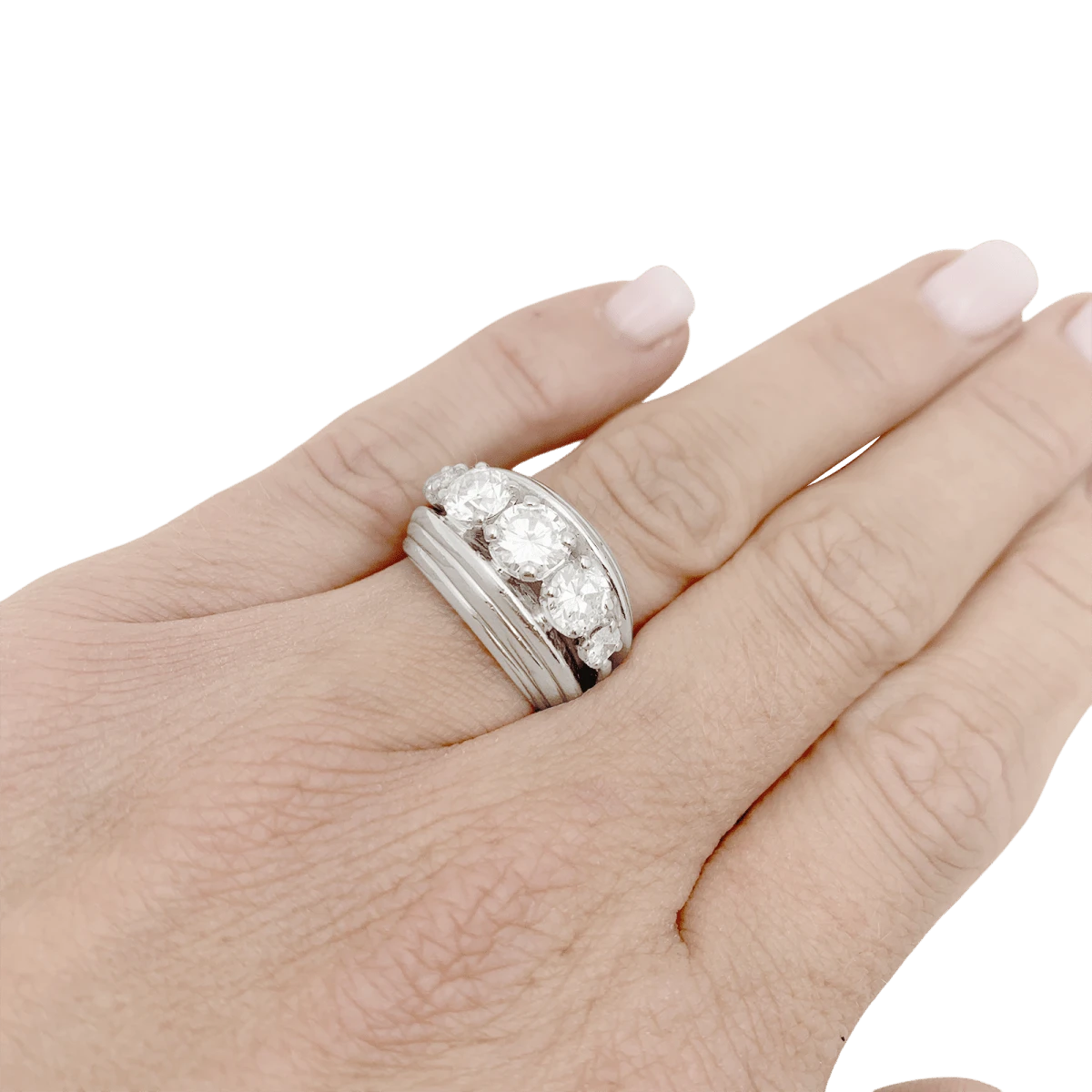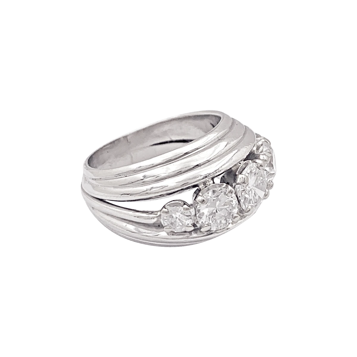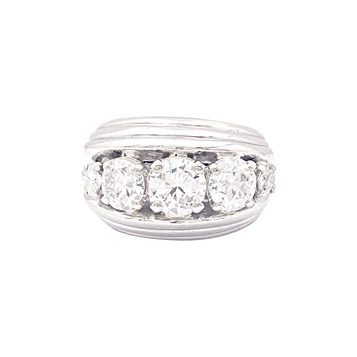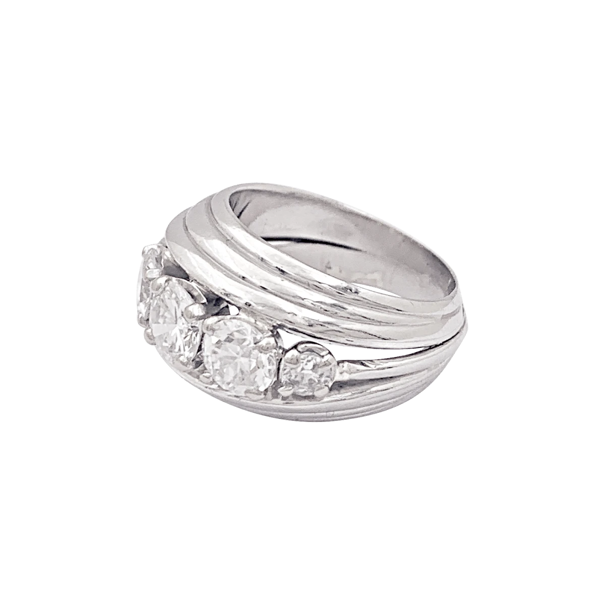 Une bague en platine 925/000 présentant un décor filaire retenant 5 diamants taille ancienne et demi-taille.