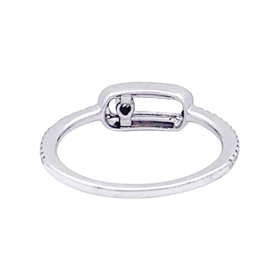 Bague MESSIKA modèle “Move Uno Pavée” en or blanc18 carats le motif central oval est pavé de diamant et retient un diamant mobile. Prix neuf : 1590€
