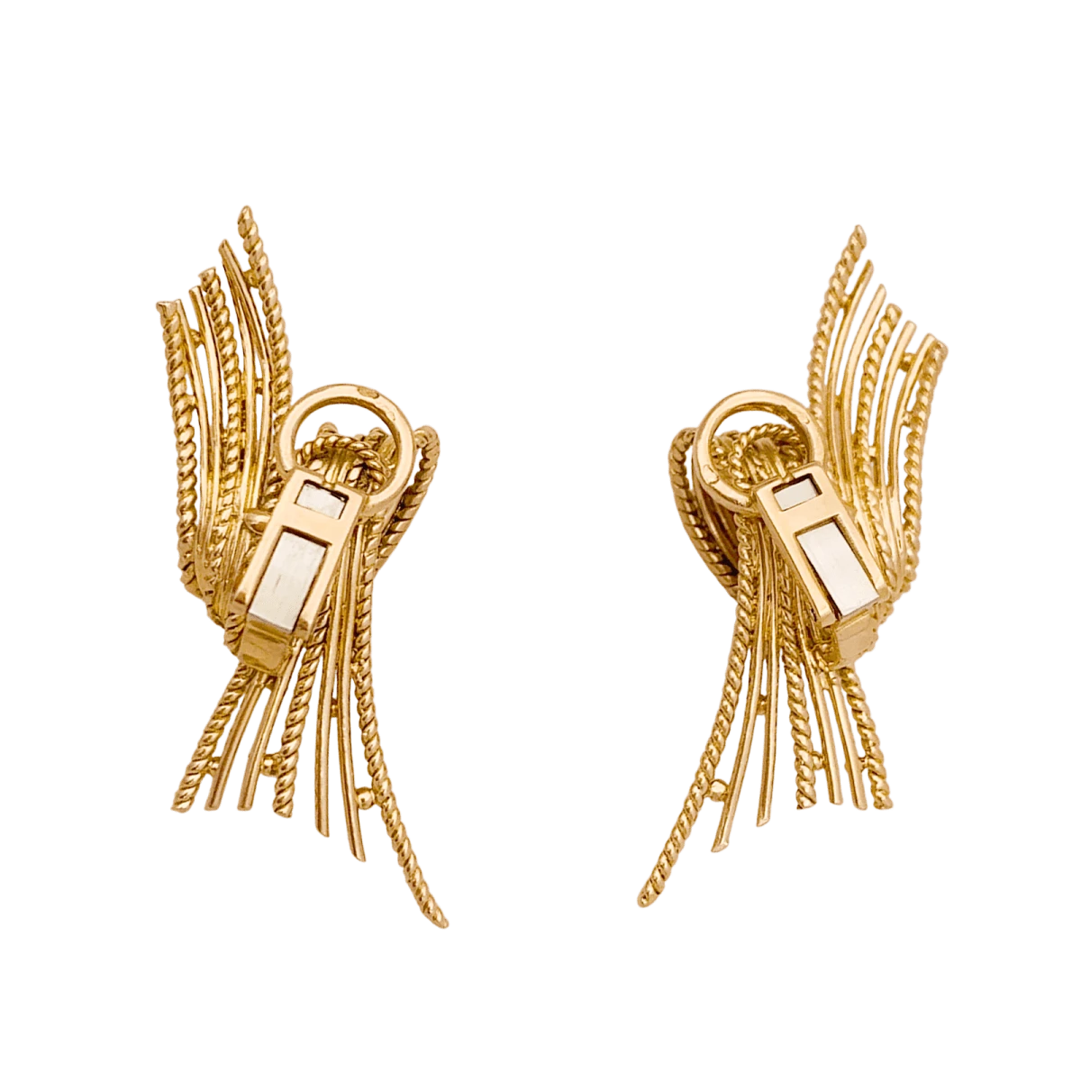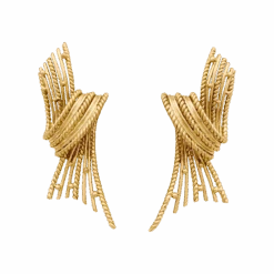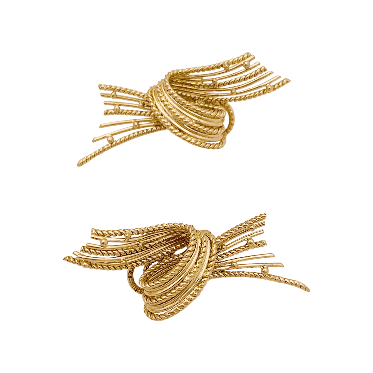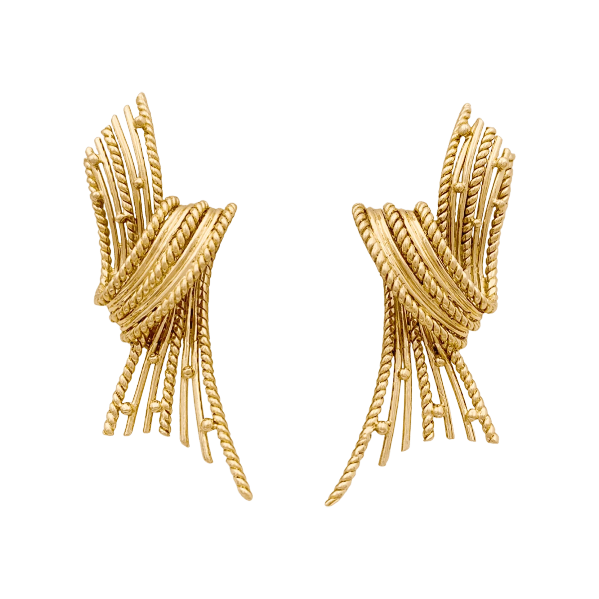 Boucles d’oreilles Clips en or jaune 18 carats composée de fils d’or lisse et torsadé, ponctués de petites perles d’orÂ