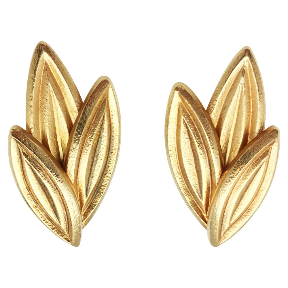 Boucles d’oreilles Clips signées LALAOUNIS à motif de feuillage en or jaune 18 carats.