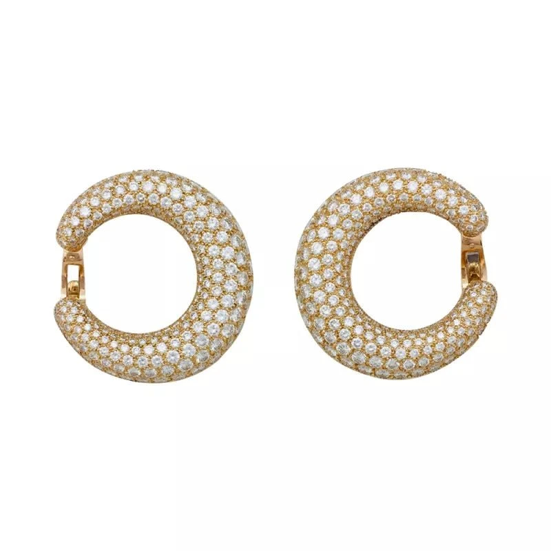 Boucles d’oreilles Créoles CARTIER en or jaune 18 carats, entièrement pavées de diamants taille brillant.
