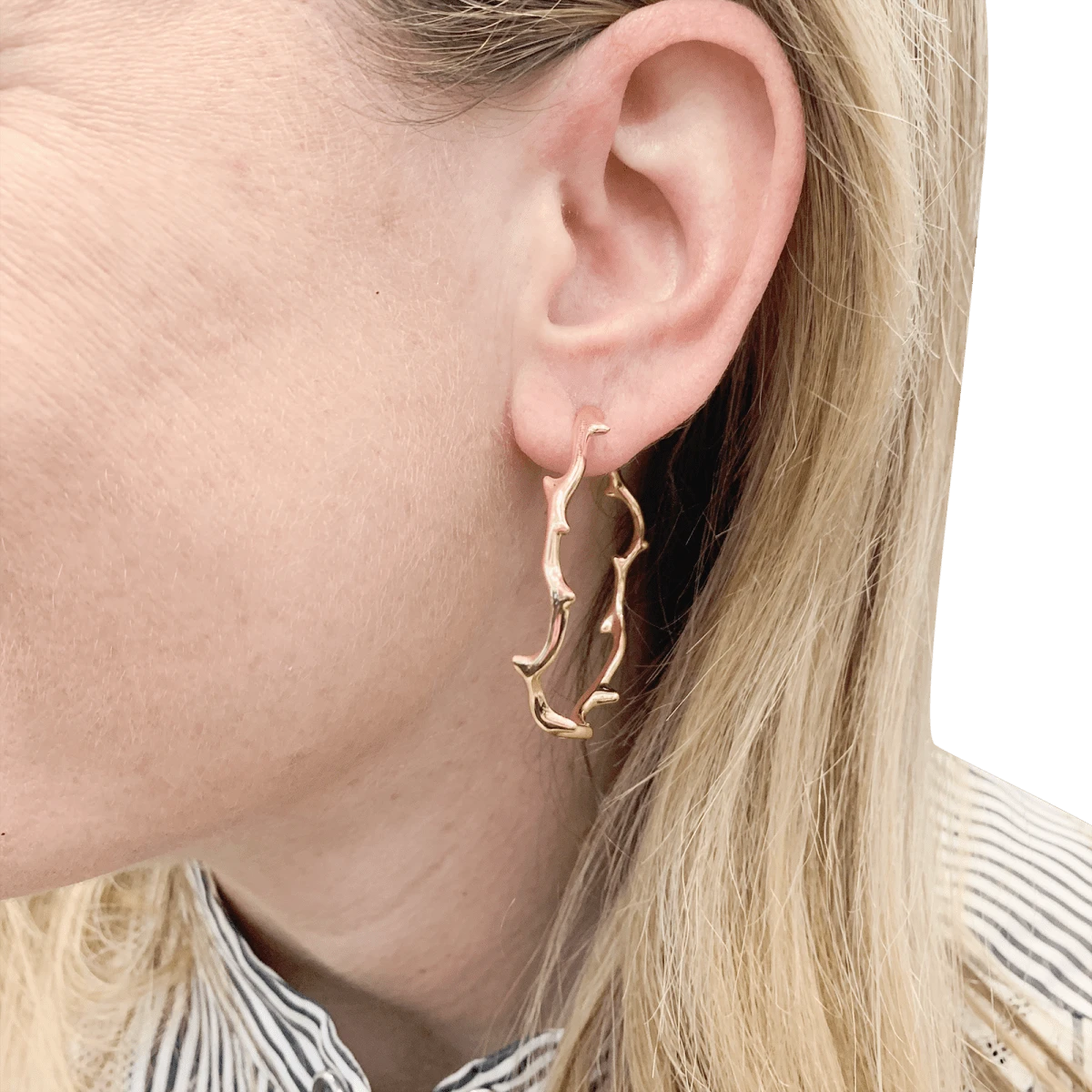 Une paire de boucles d’oreilles signée de la Maison Dior, collection « Bois de Rose », en or rose 18 carats figurant des tiges de rose.