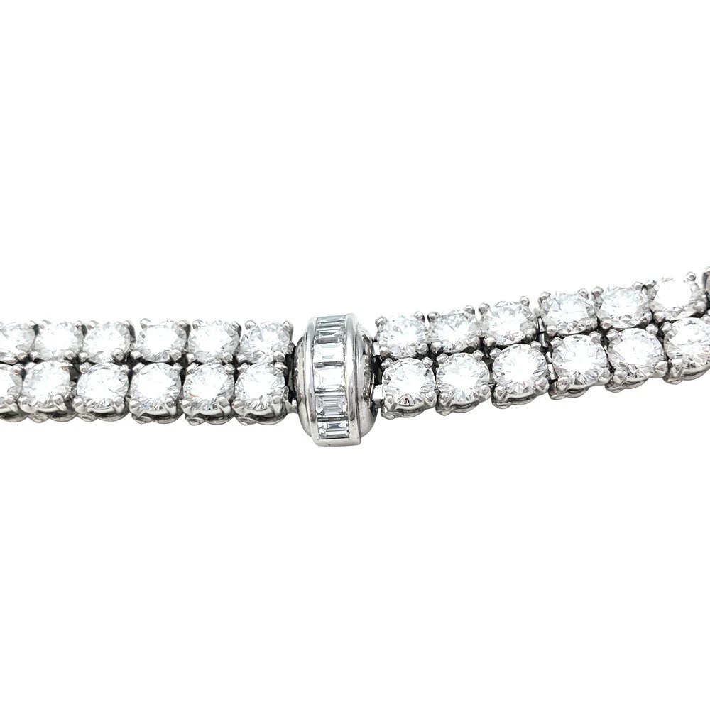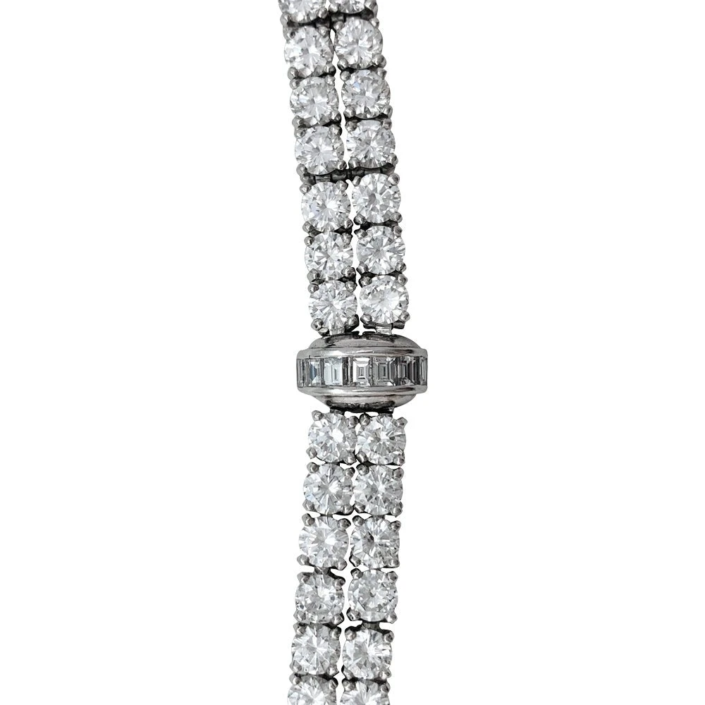 Un bracelet ligne signé de la maison Cartier en platine 950/000, modèle ‘Kalypso’, serti de 72 diamants taille brillant pour un poids total de 14,52 carats et 21 diamants taille baguette pesants 1,31 carat.