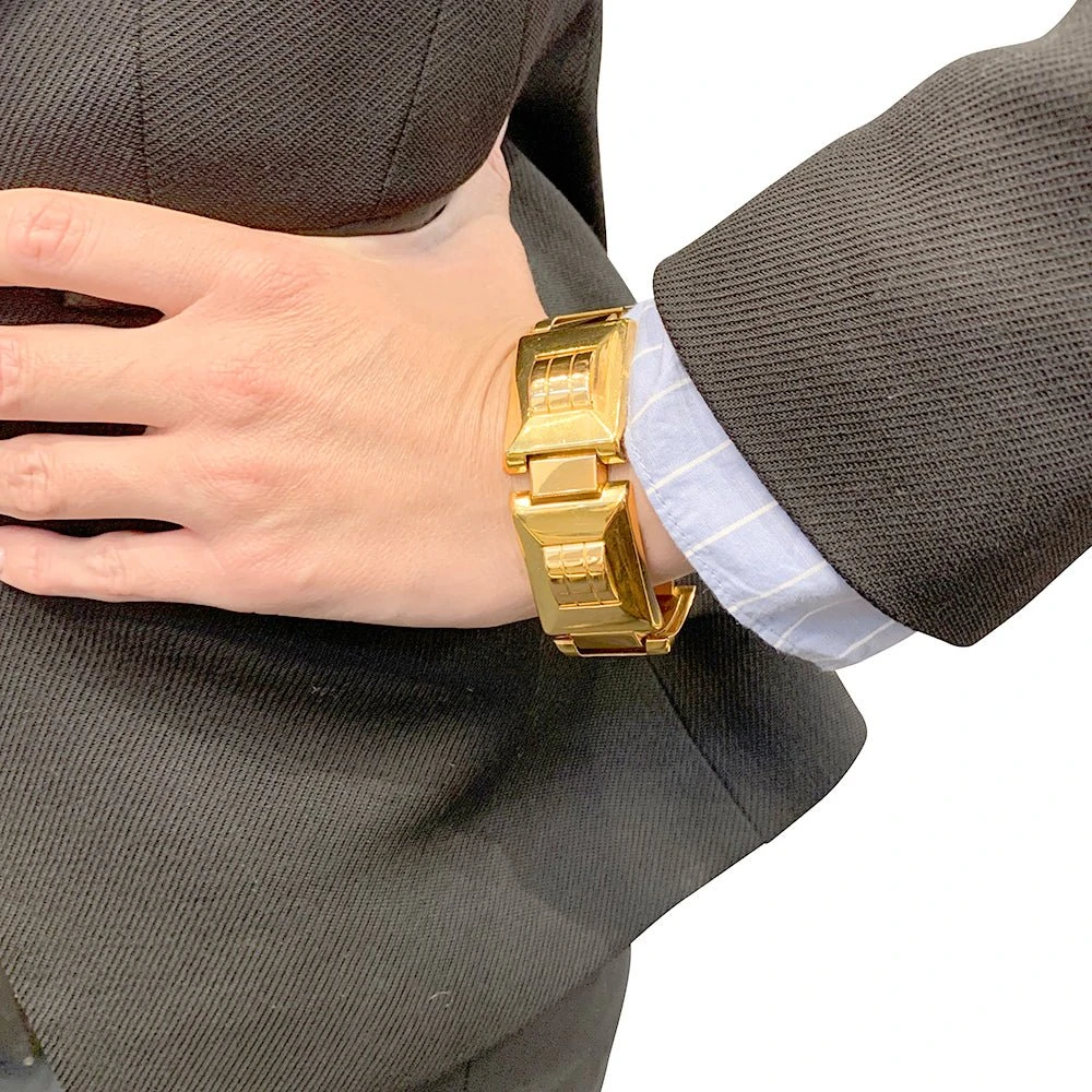 Un bracelet dit ‘Tank’ en or rose 750/000 et en or jaune 750/000 composé de maillons rectangulaires.