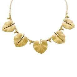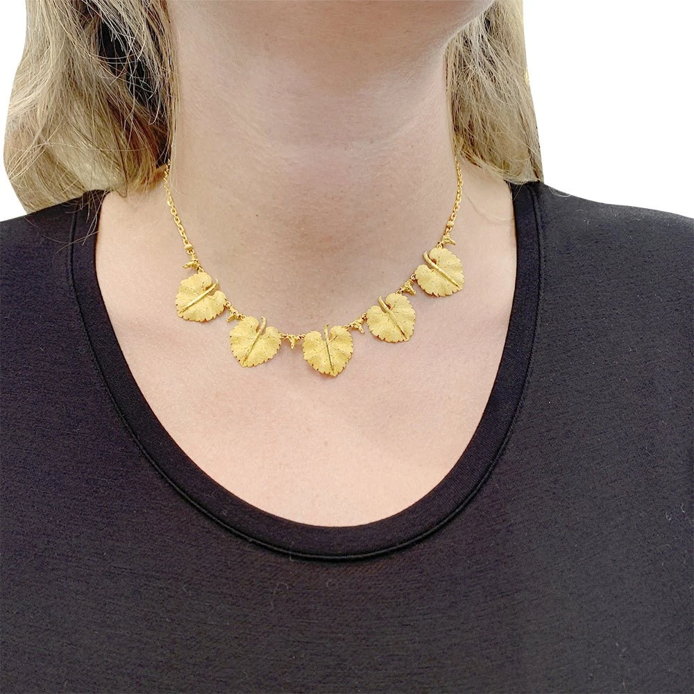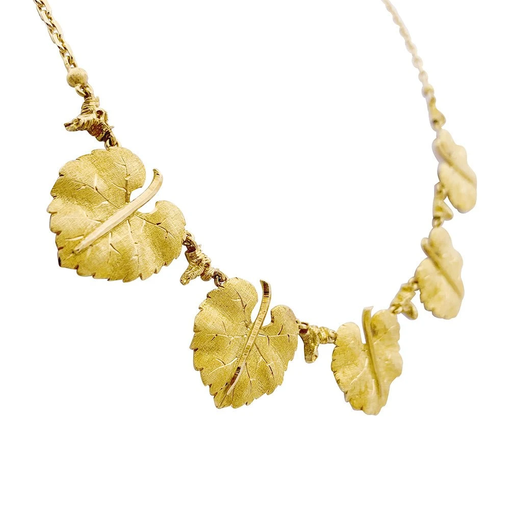 Collier BUCELLATI Feuilles en or jaune 18 carats, composé d’une chaîne maille forçat retenant 5 feuilles en or jaune 18 carats texturé.