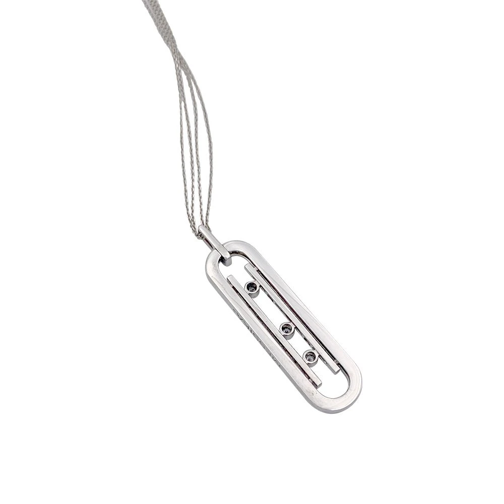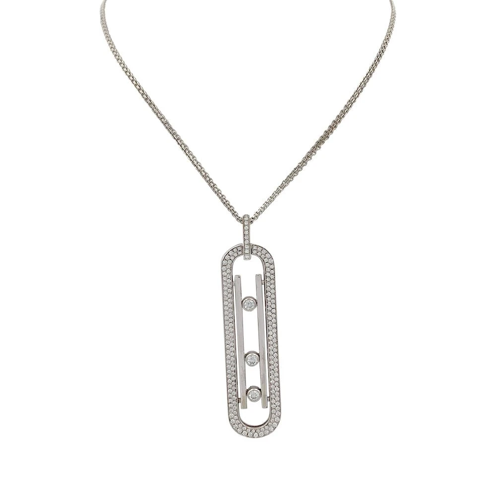 Collier Sautoir MESSIKA “Move 10th Anniversary” composé d’une double chaîne maille forçat en or blanc 18 carats retenant un pendentif ajouré serti d’un pavage de diamants taille brillant et de trois diamants mobiles.