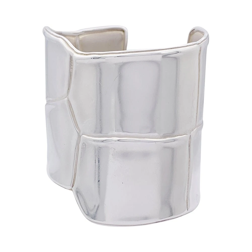 Une manchette signée de la Maison Hermès, modèle “Niloticus Eclat” en argent 925/000 présentant un motif d’écailles de crocodile.