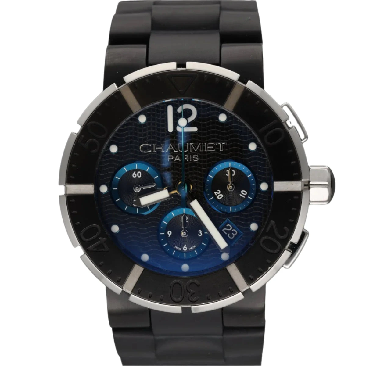 Montre Chaumet pour homme modèle « Class One Chrono XXL » vers 2015 en Acier et PVD avec Bracelet Caoutchouc et mouvement automatique chronographe. Boucle déployante. Prix neuf : 6250€. 44 mm.