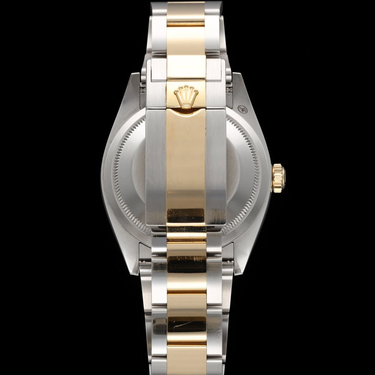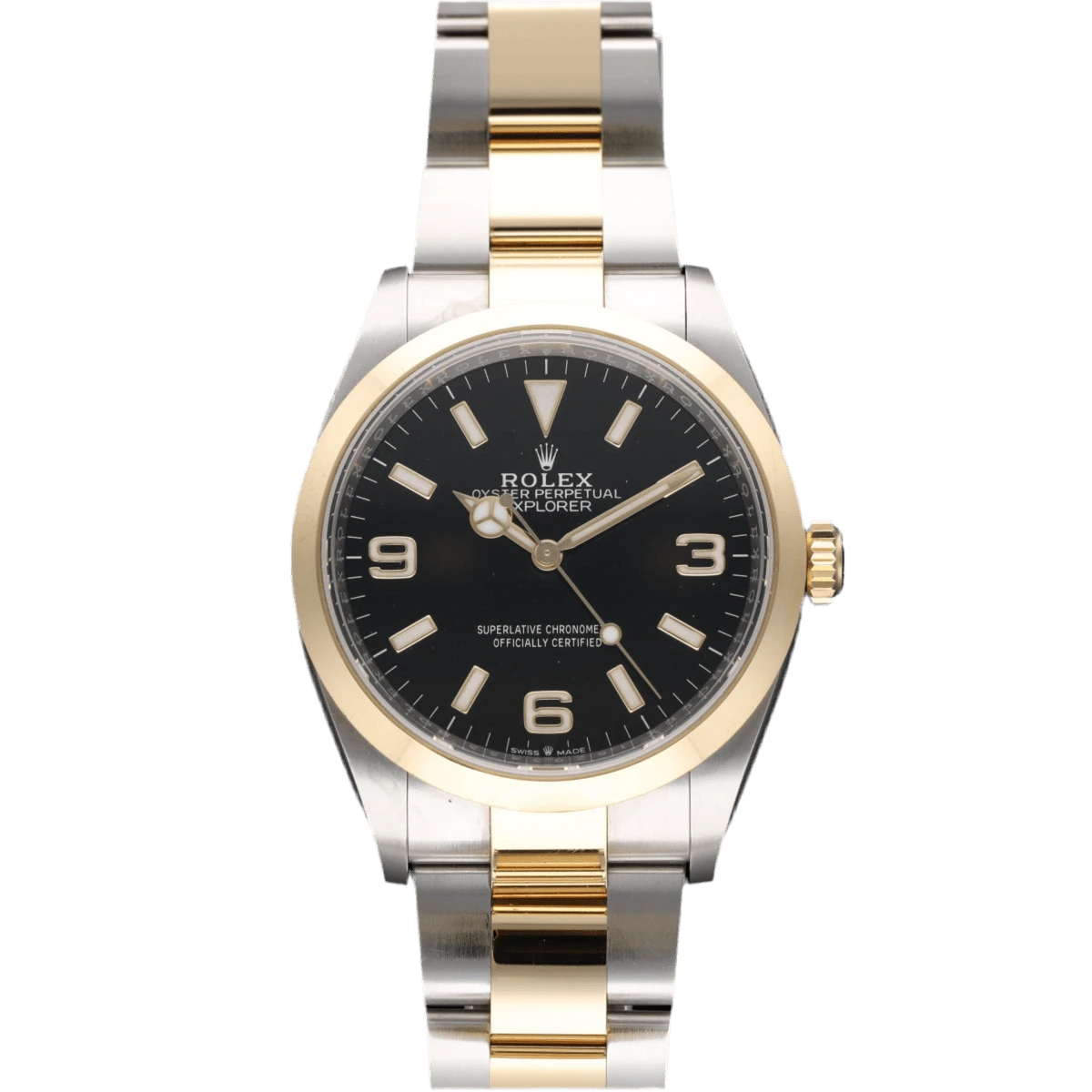 Montre Rolex, modèle Explorer, en or jaune 18 carats et acier, cadran noir.