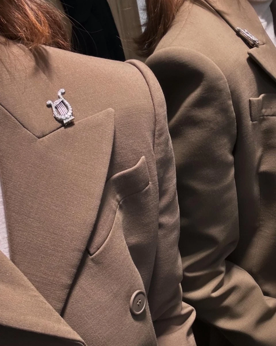 Paire de clips d’oreilles représentant des lyres en or gris 18K. Pavés de diamants ronds de taille ancienne, 8/8 ou taille brillant. Ils peuvent également être utilisés comme clips.